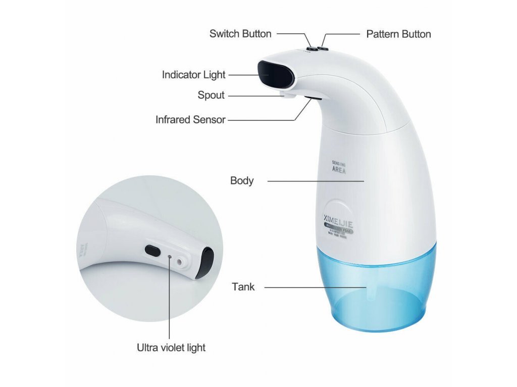 Bezdotykový automatický dávkovač mydla vytvárajúci penu je vhodný do každej kúpeľňe. VĎAKA infračervenému snímaniu sa aktivuje dávkovač, ktorý uvoľní len jednu kvapku mydla, ktorá vytvorí bohatú penu. Dávkovač pozostáva zo zásobníka, ktorý ma 330ml kapacitu, a dávkovacieho mechanizmu, koré sú oddelené, takže mechanizmus sa mydlom nepoškodí. Dávkovač je vyrobený z ABS plastu, je vhodný ako na mydlo, tak aj na alkoholové dezonfekčné prostriedky. Dávkovač je na alkalické batérie. Tento dávkovač ZAISŤUJE najhygienickejší spôsob umývania rúk. Reakčná vzdialenosť senzora je 3-5 cm.
