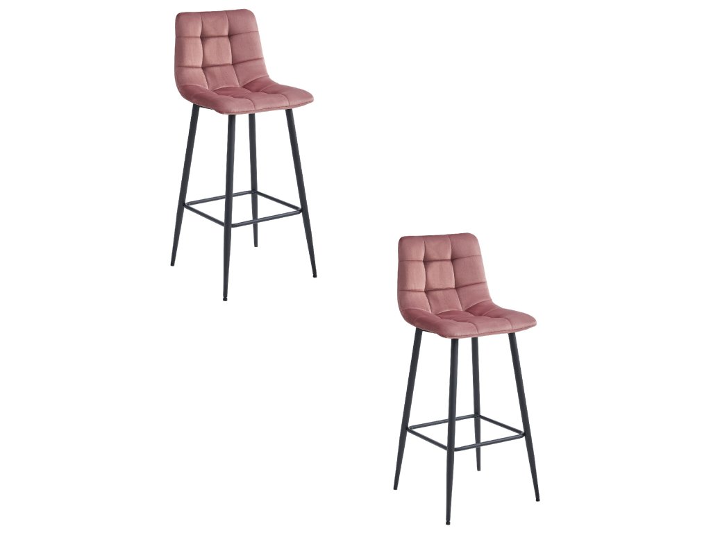 Barová stolička ARCETO - tmavoružový zamat / čierne nohy x 2
