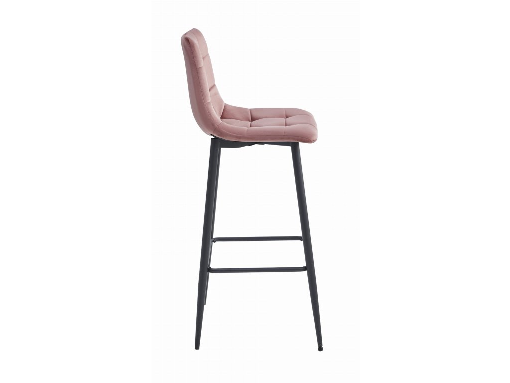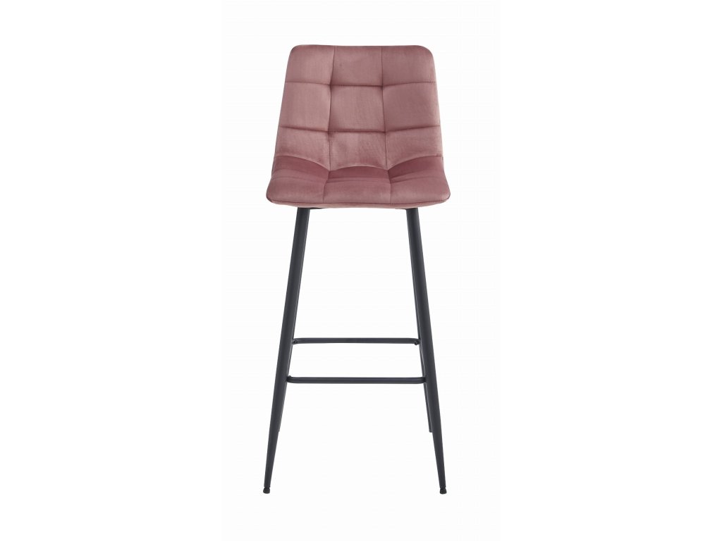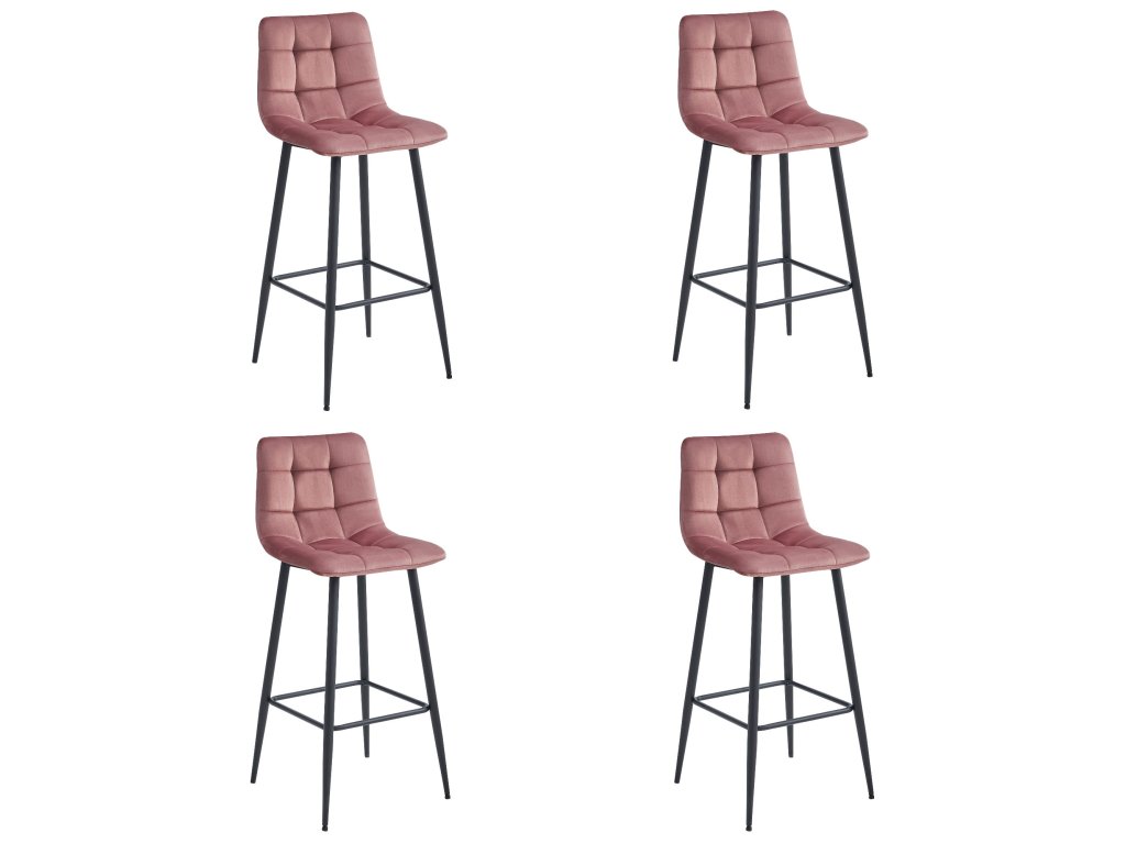 Barová stolička ARCETO - tmavoružový zamat / čierne nohy x 4