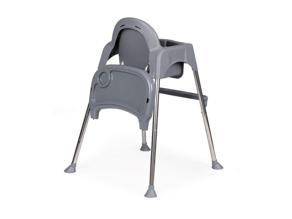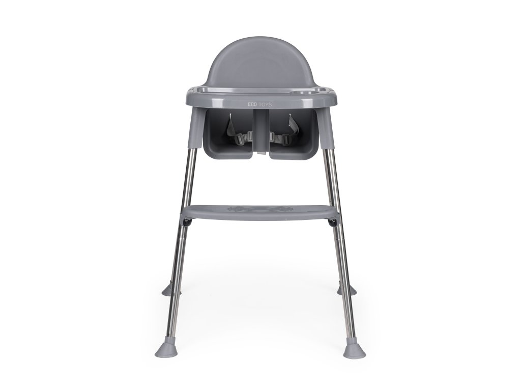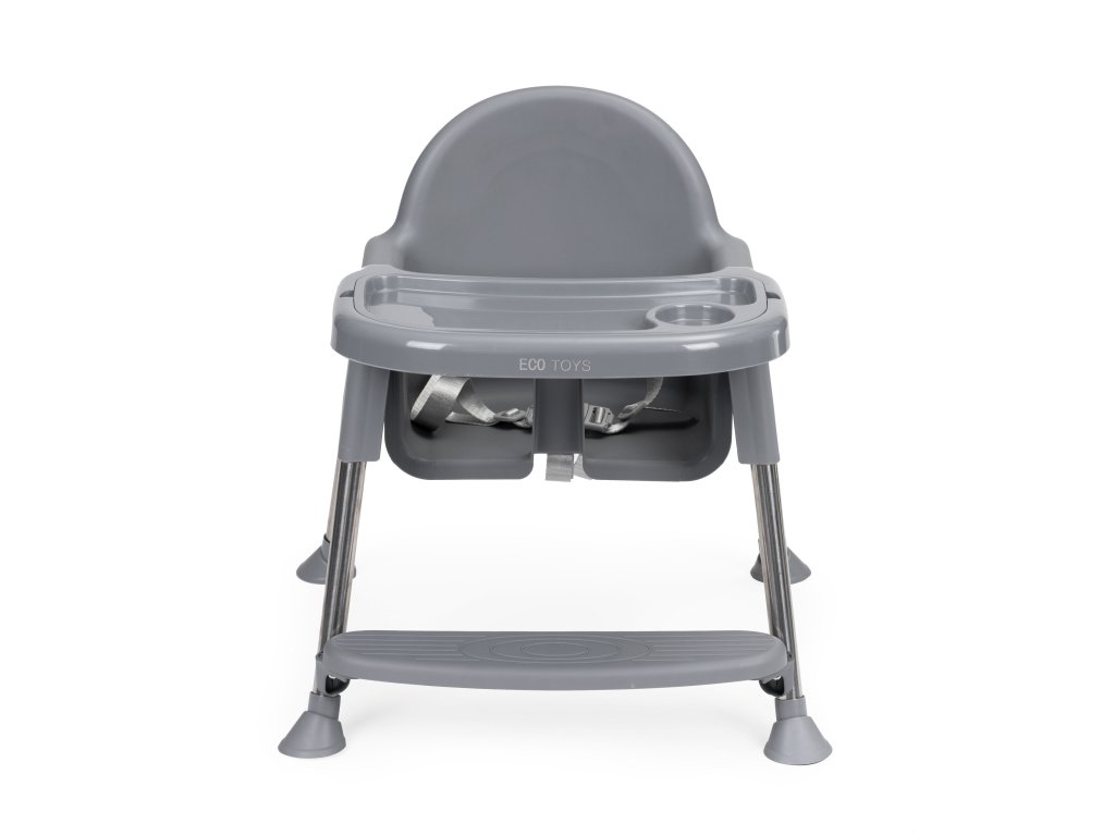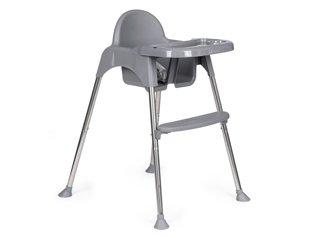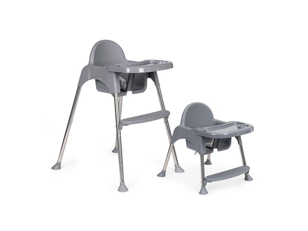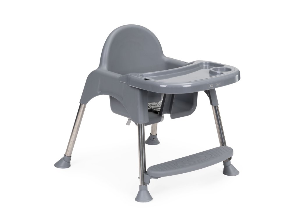 The chair can be adjusted in height. You can easily unscrew the legs and the footrest , thanks to which the high chair will become a lower chair. If your little one becomes independent and you don't have to watch him closely anymore, a lower chair will be perfect for him.
