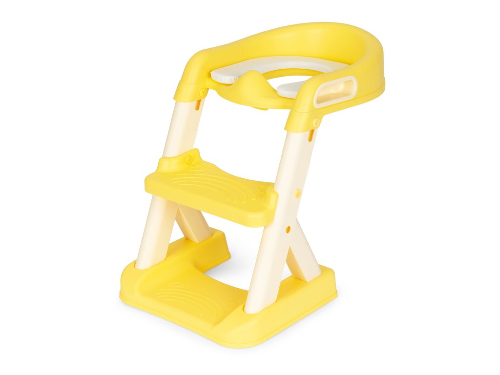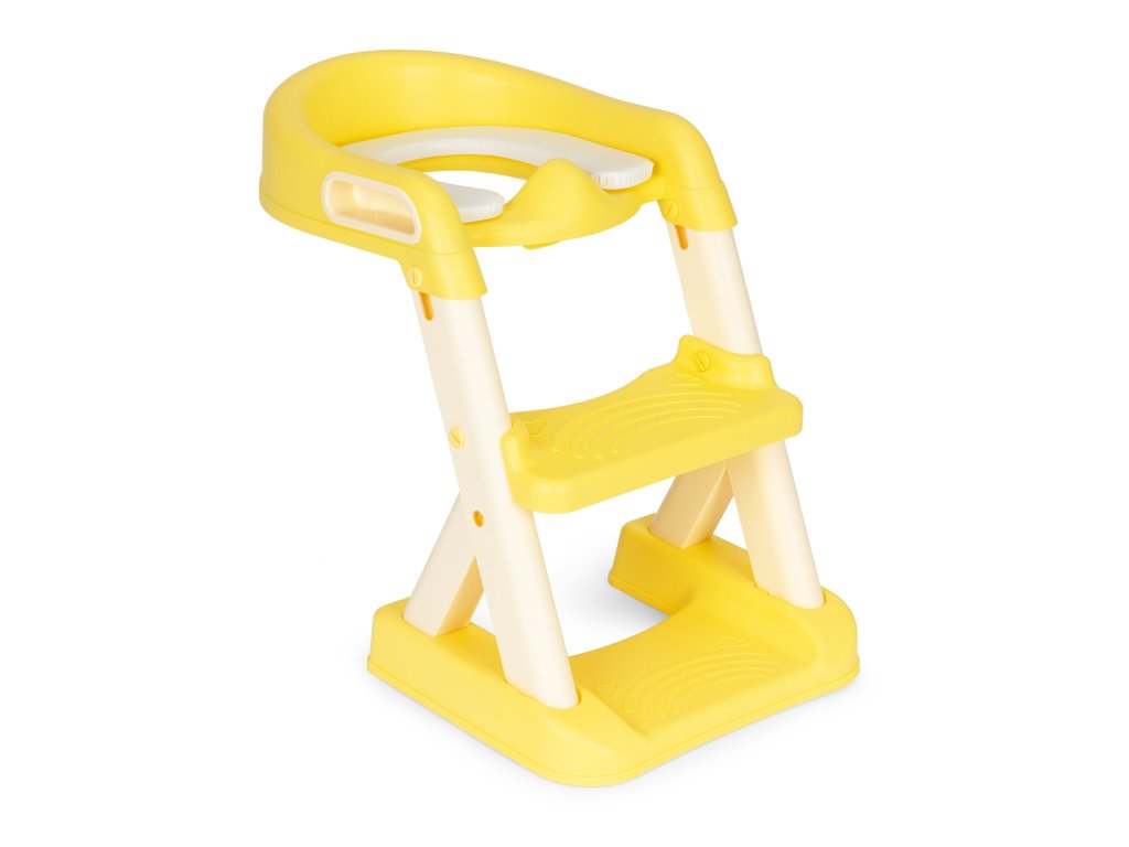 The set is made of durable plastic, thanks to which it will be used throughout the period when your child will not be able to use the toilet on his own. The stairs are height-adjustable, thanks to which you can adjust their height to the child's height, the steps are specially embossed to prevent feet from slipping when climbing them. The size of the overlay is perfectly matched to all toilet seats, thanks to which it will adhere perfectly and will not move while using the toilet. For increased comfort, the overlay has special handles and an additional, soft insert on which the child sits.