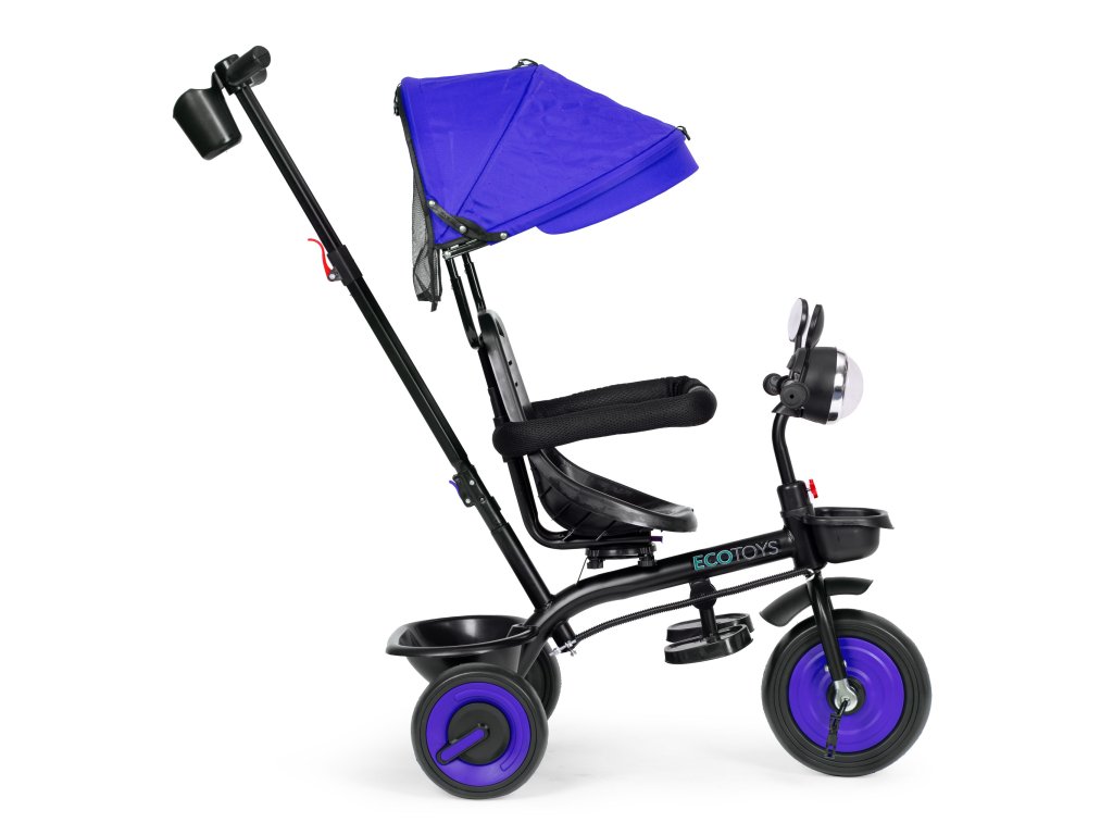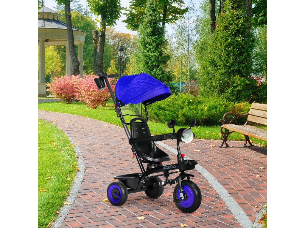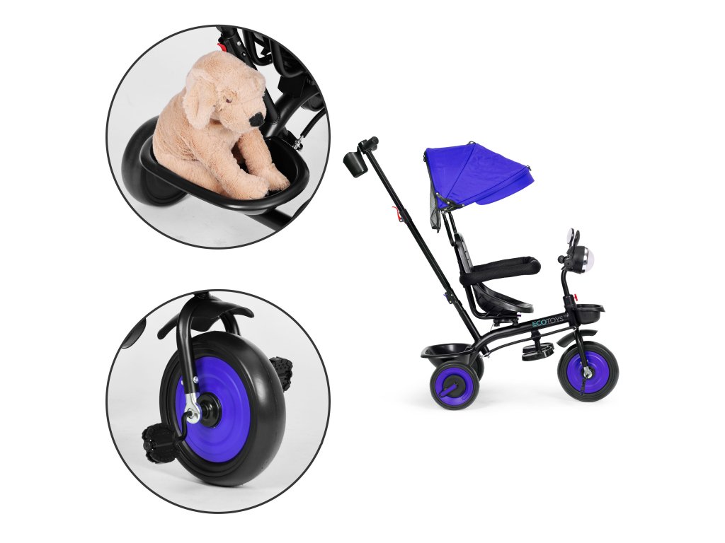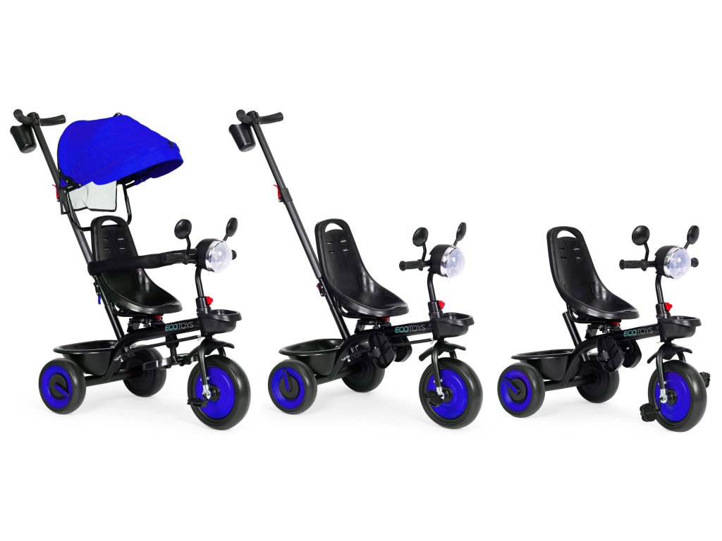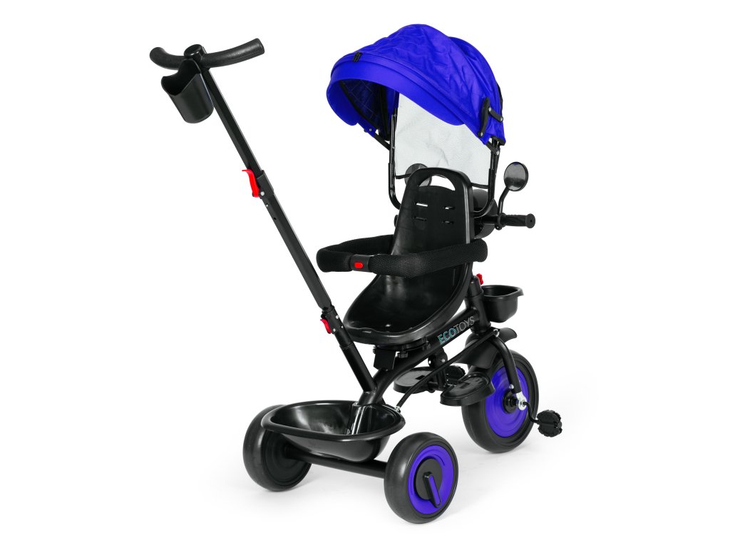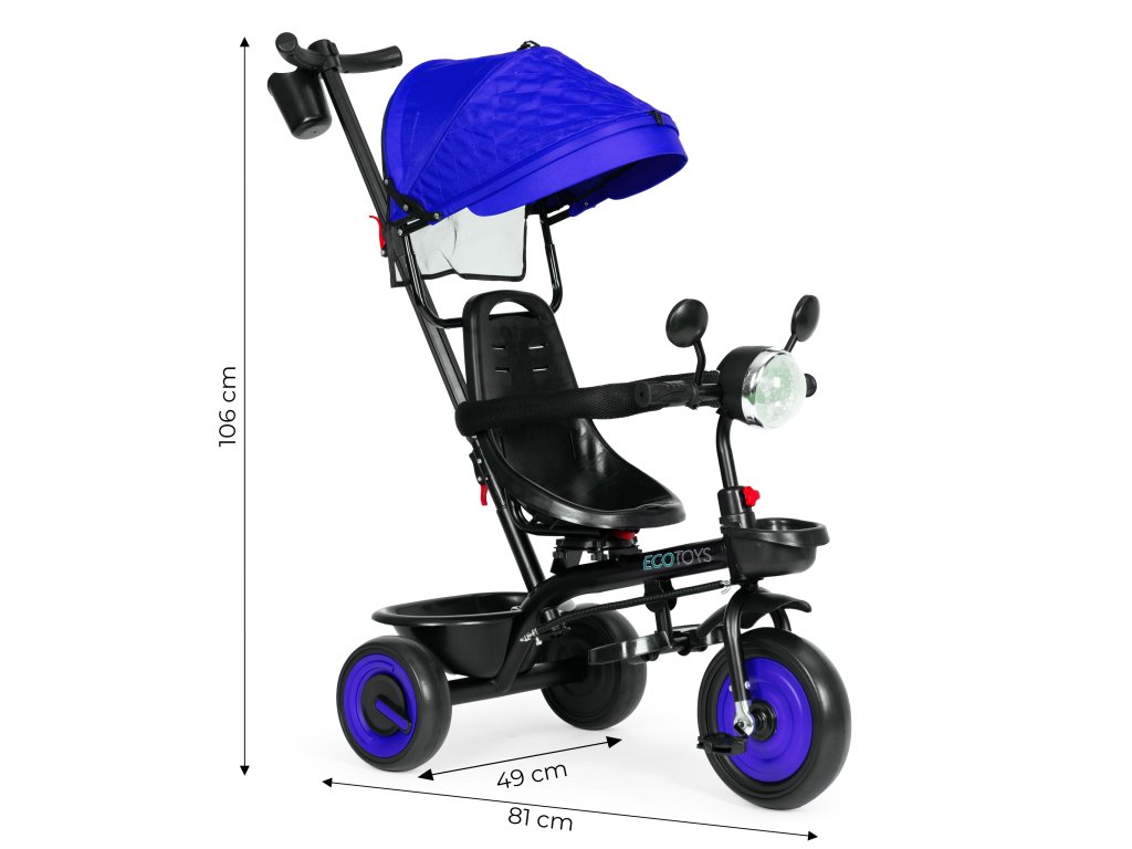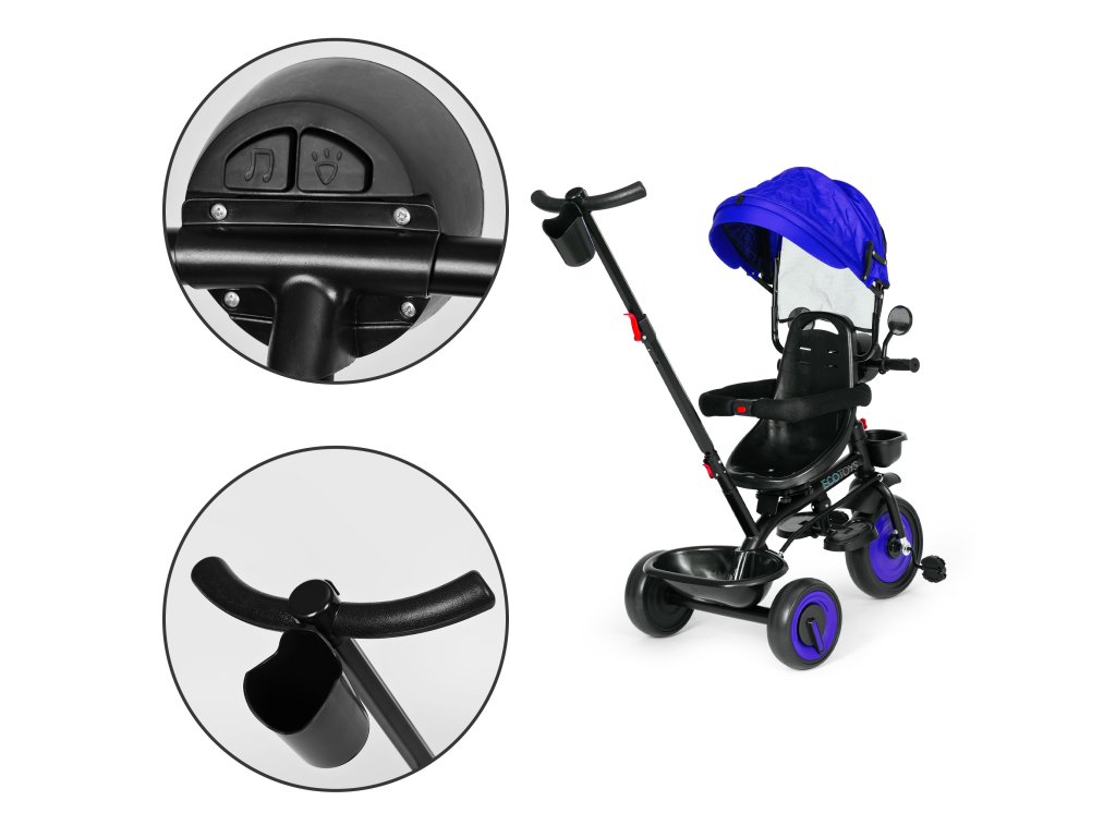 detský trojkolový kočík 3 v 1 s otočným sedadlom, strieška, modrý,