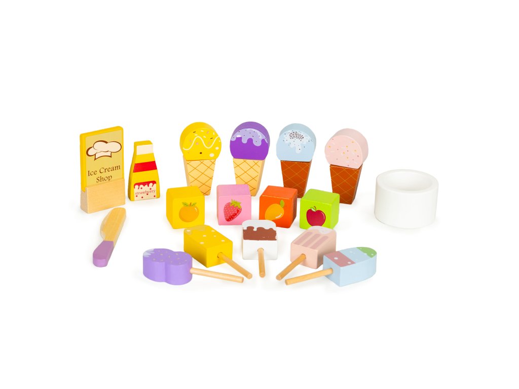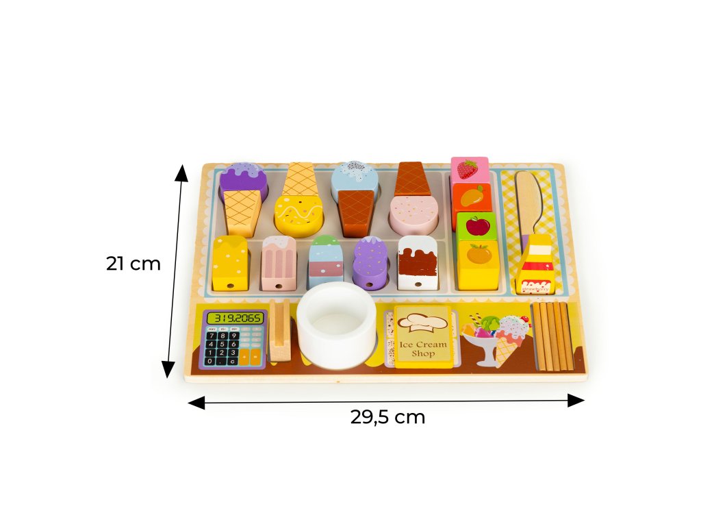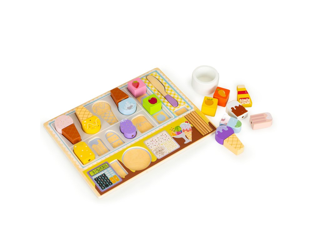 Drevené prvky, ktoré sú súčasťou sady, sú starostlivo vyrobené , pričom sa zachovávaautentické údaje.To dodáva zábave realistickosť. Vaše dieťa si užije vytváranie rôznych scenárov súvisiacich s výrobou a predajom zmrzliny.