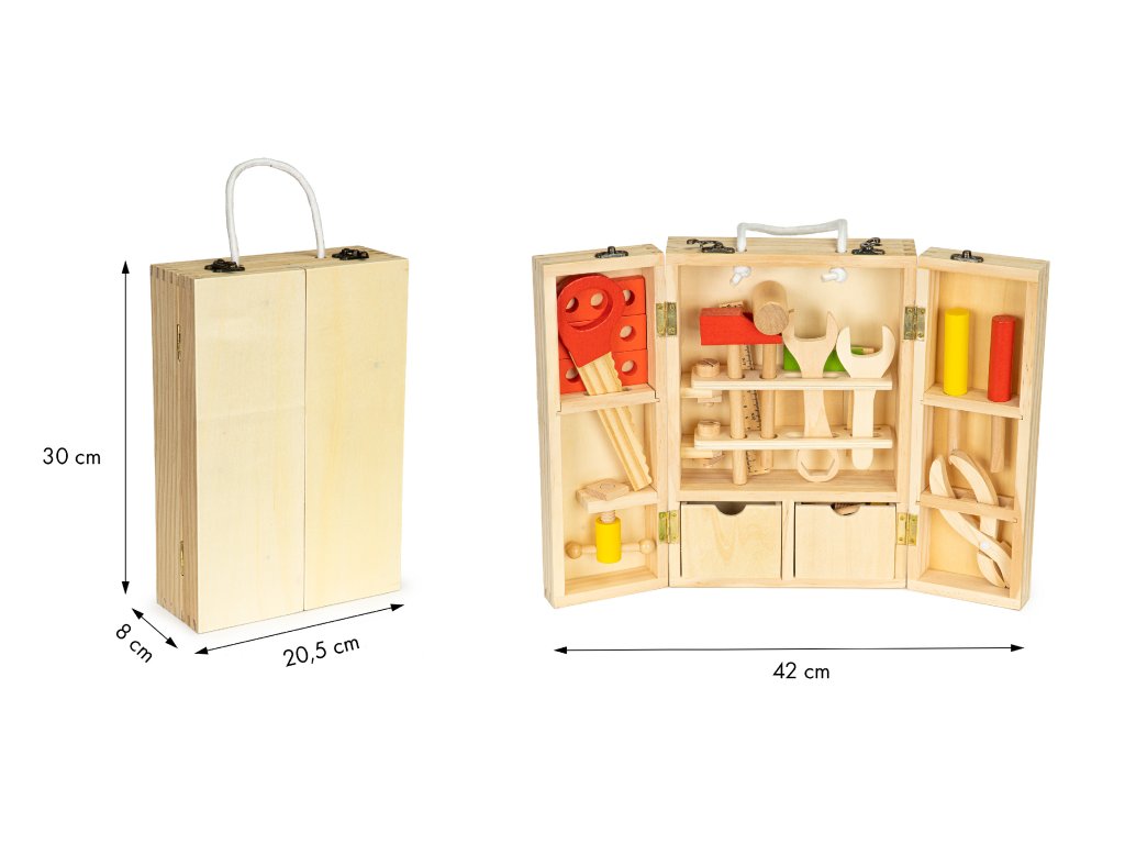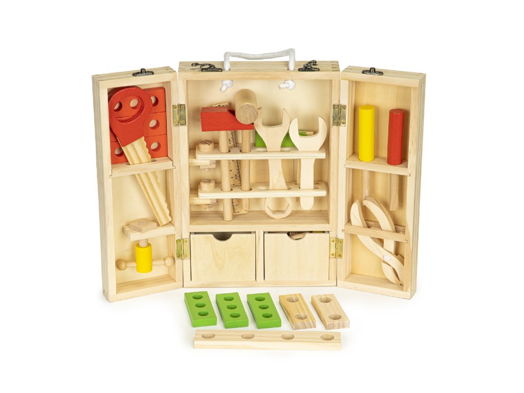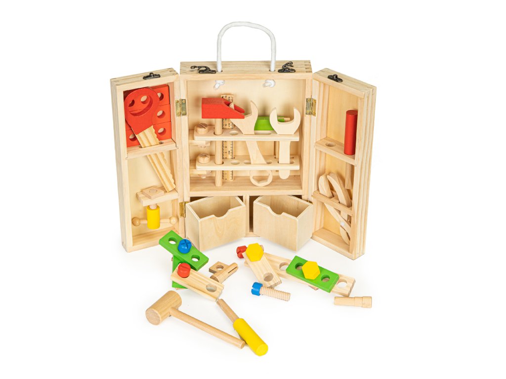 Drevené ekvivalenty nástrojov počas hry veľmi dobre plnia svoju funkciu. S ich pomocou vám dieťa určite pomôže pri každodenných opravách.