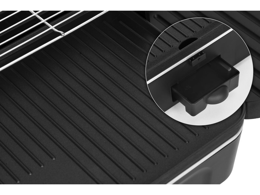 Výsuvná odkvapkávacia miska uľahčujena udržiavanie grilu v čistote - tuk steká do zásobníka na vodu, ktorýodstraňuje dym a nepríjemné pachy. Po grilovaní ho jednoducho vyberte a vyprázdnite. Je to rýchle,hygienické a ekologické riešenie ktoré vám ušetria čas.