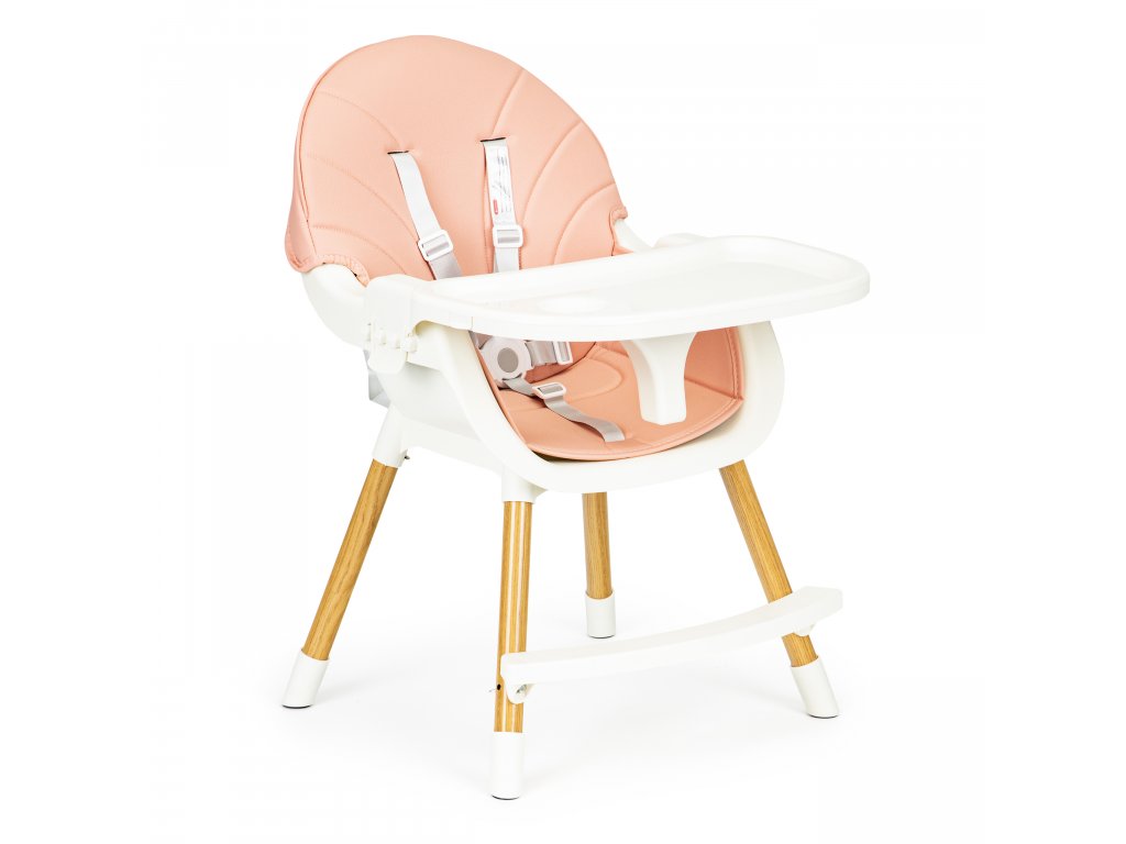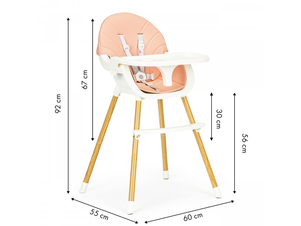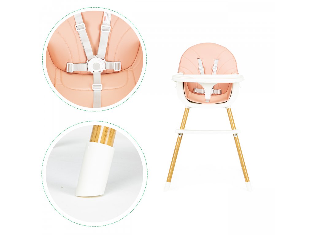 Stoličku možno výškovo nastaviť. Nohy a podnožku môžete ľahko odskrutkovať, vďaka čomuz vysokého sedadla sa stane nižšia stolička.