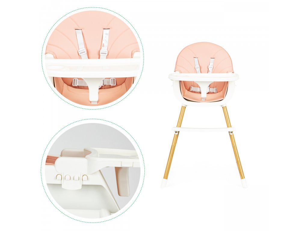 Sedadlo má špeciálny zámok (odnímateľný), ktorýzabraňuje vypadnutiu dieťaťa zo sedačky. To je veľmi dôležité, keď potrebujete na chvíľu spustiť dieťa z dohľadu, aby ste mu pripravili jedlo.