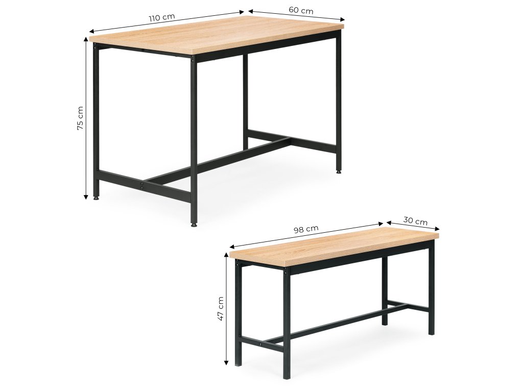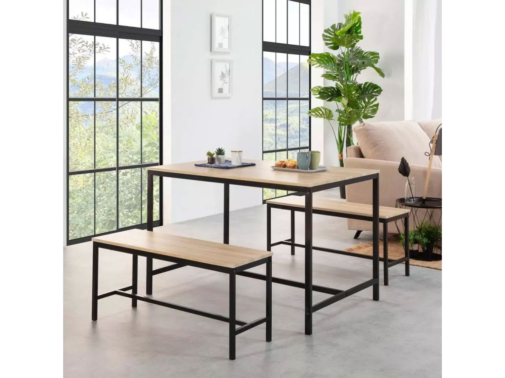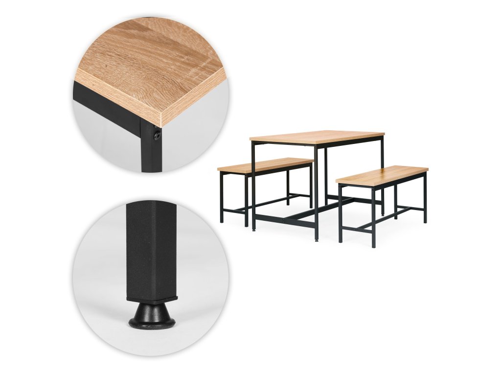 Sada podkrovného nábytku je ideálna prejedálenské a kuchynské priestory, vnesie do vášho interiéru industriálnu atmosféru. Je ideálny na každodenné stolovanie s rodinou alebo večerné stretnutia s priateľmi. Jeho kompaktný dizajnľahko sa zmestí do malých miestností, a možnosť zasunúť lavice pod stôl vám umožní maximálne využiť priestor.