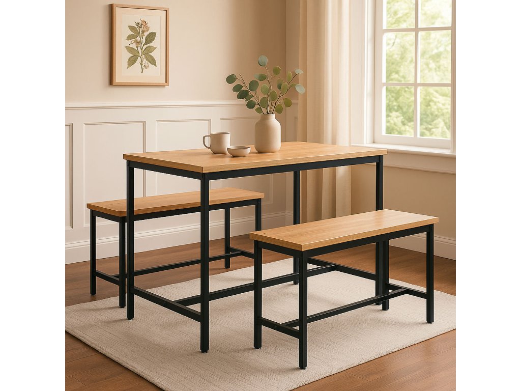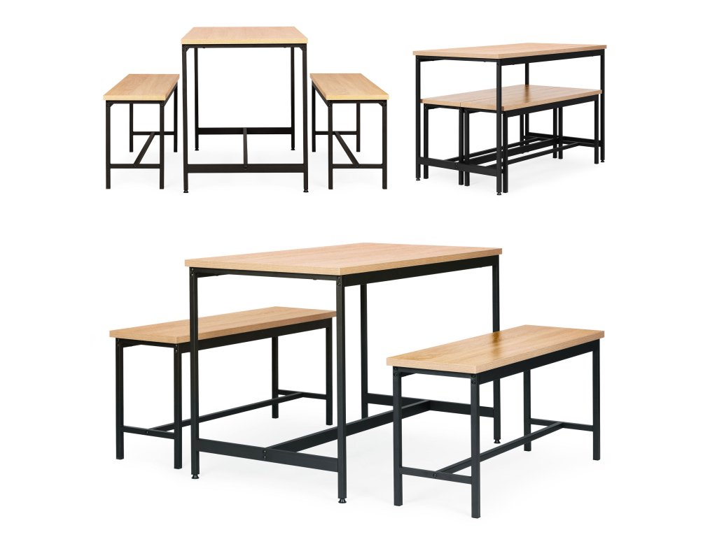 Loftová jedálenská zostava nábytku - stôl a 2 lavice do kuchyne alebo jedálne