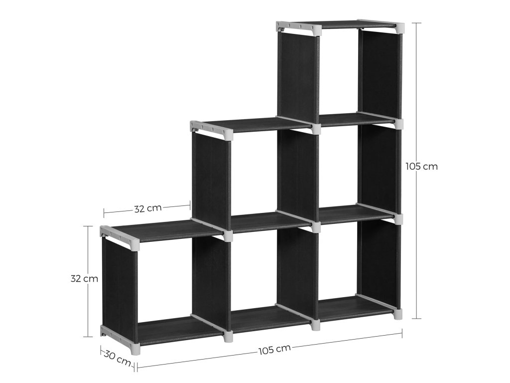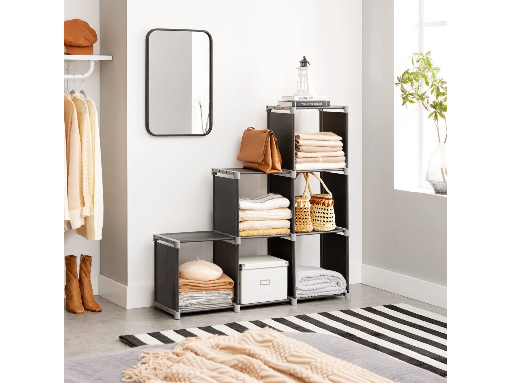MODULÁRNA SKLADACIA KNIŽNICA,6 POLÍC, ČIERNA FARBA