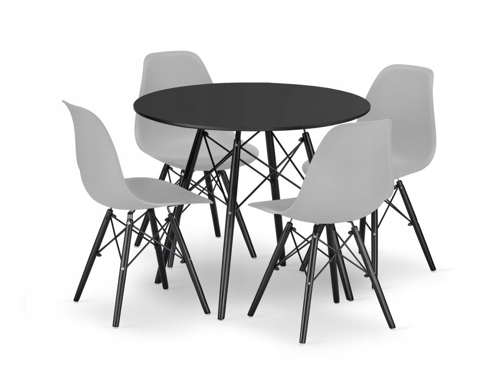 Okrúhla stolová súprava TODI 80 čierna + 4 stoličky OSAKA sivá