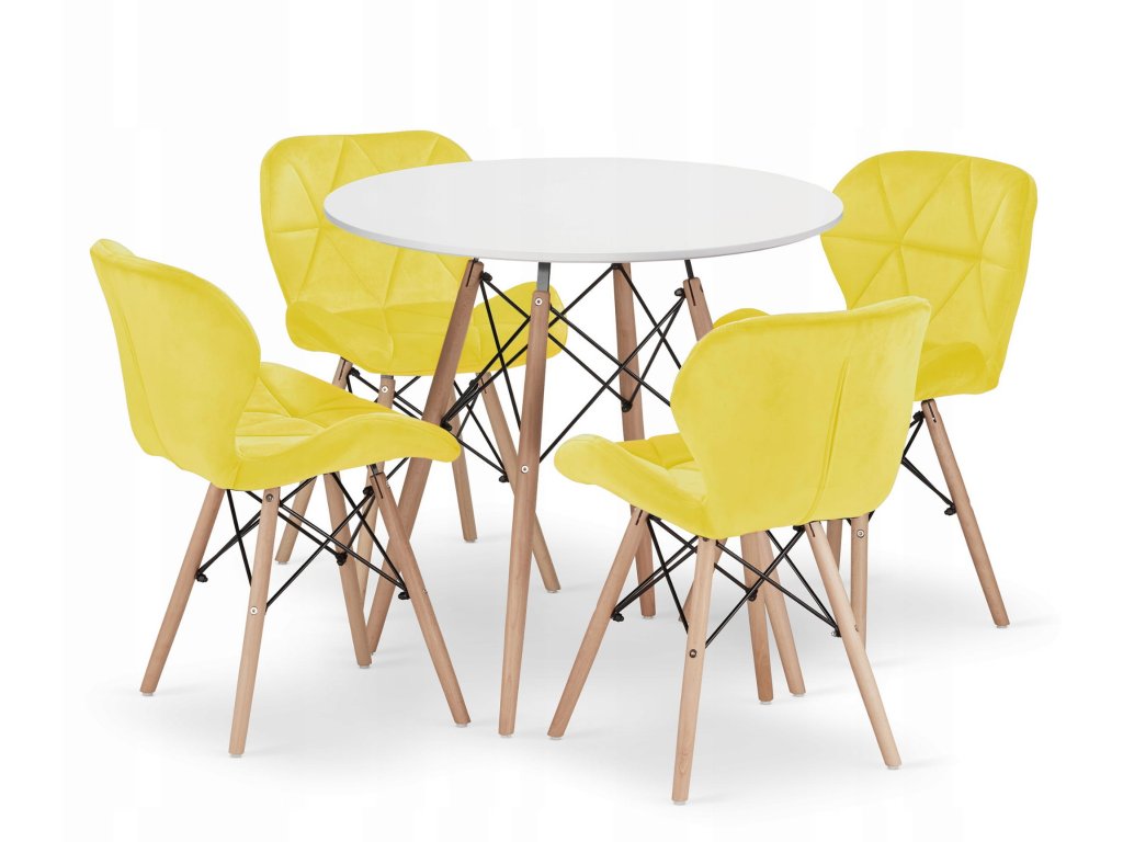 Okrúhly stolový set TODI 80 biely + 4 stoličky LAGO žltý