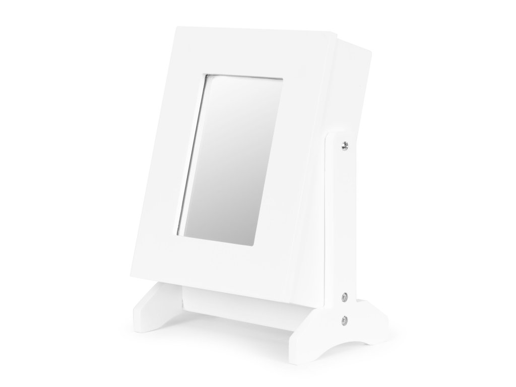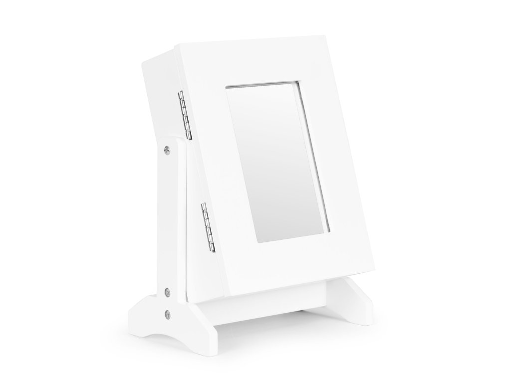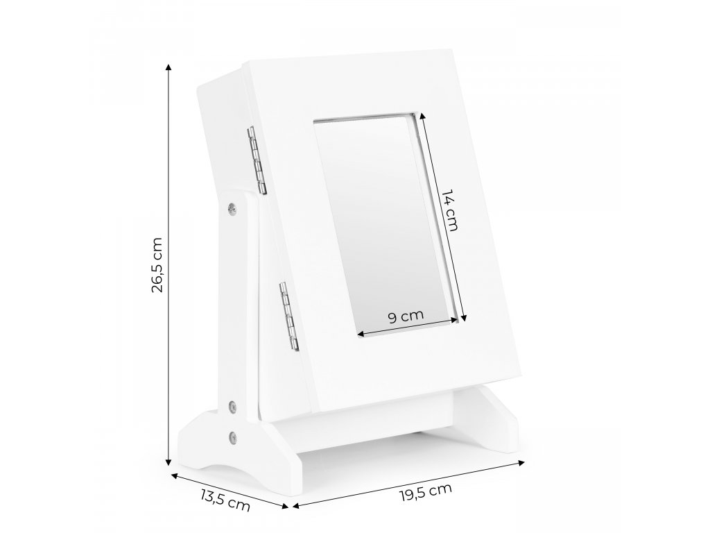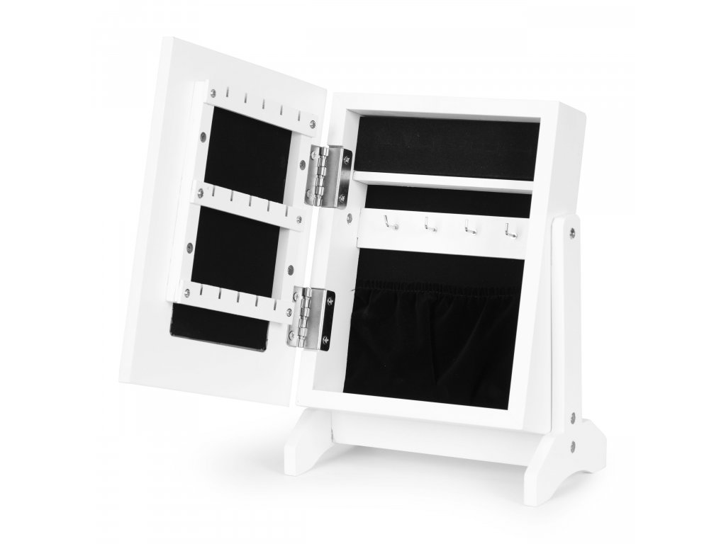 Šperkovnica s funkčným zrkadlom je určiteskvelý nápad na darček. Môže pojať veľký početnáhrdelníkov, prsteňov, náramkov a náušníc .Čalúnený interiér dodáva šarm a eleganciu avonkajšie zrkadlo vám pomôže vybrať doplnky a dokonca aj použiť make-up.