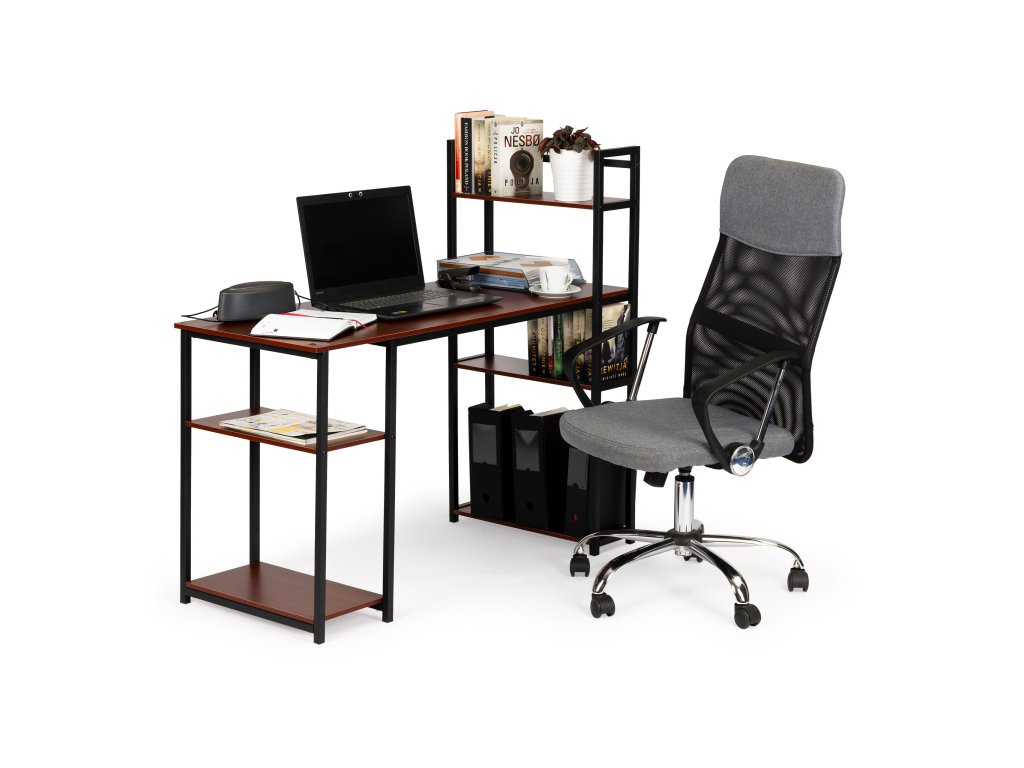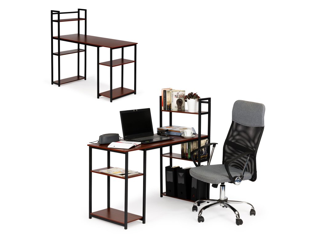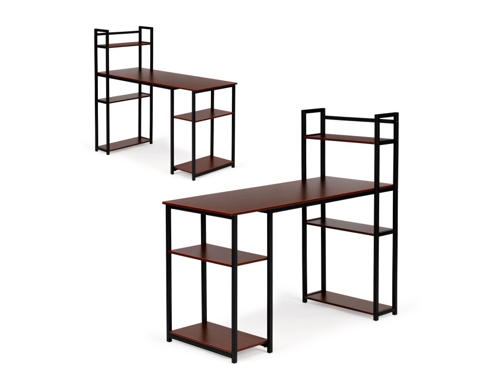 Počítačový stôl podkrovný stolík police svetlý dub tmavý BRONZ