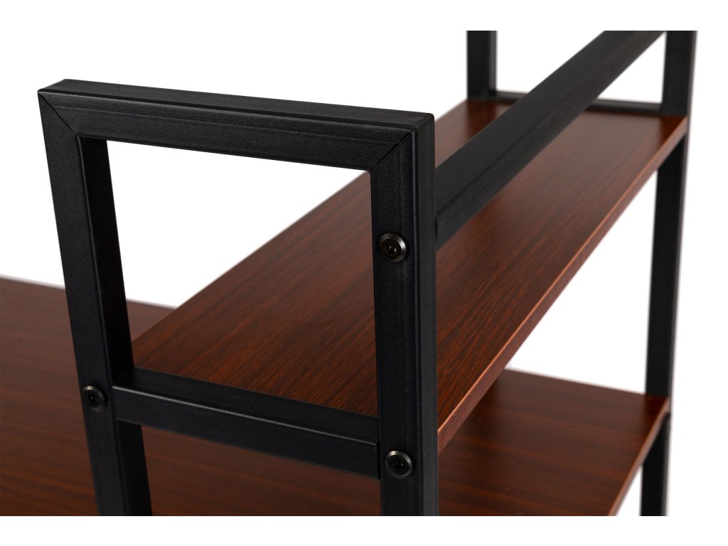 - Vrchná časť a police sú vyrobené z MDF dosky dyhovanej laminátom. Vďaka tomu sa nábytok jemne leskne, prezentuje sa veľmi luxusne a je veľmi odolný voči každodennému používaniu.