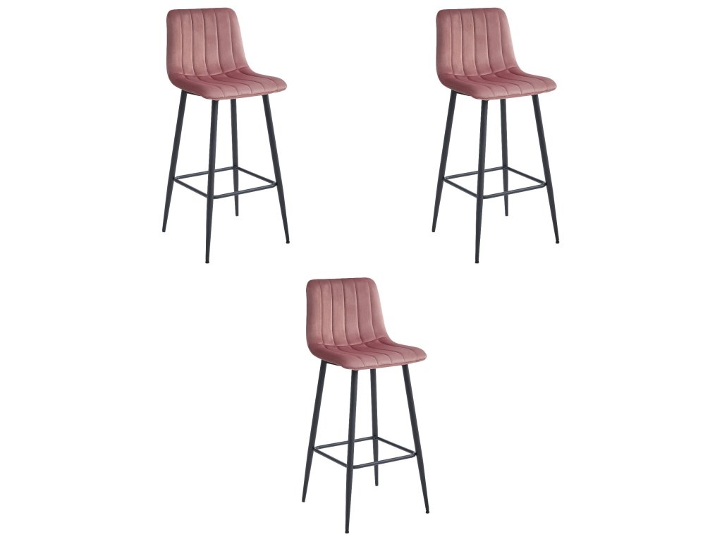 POZZA Barová stolička - tmavoružový zamat / čierne nohy x 3