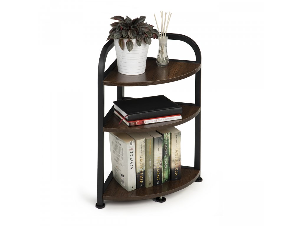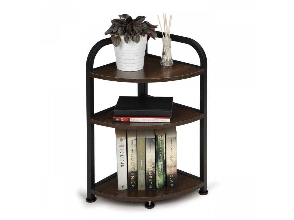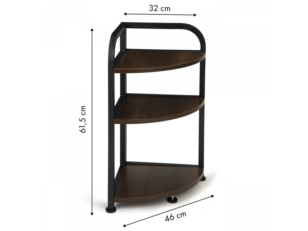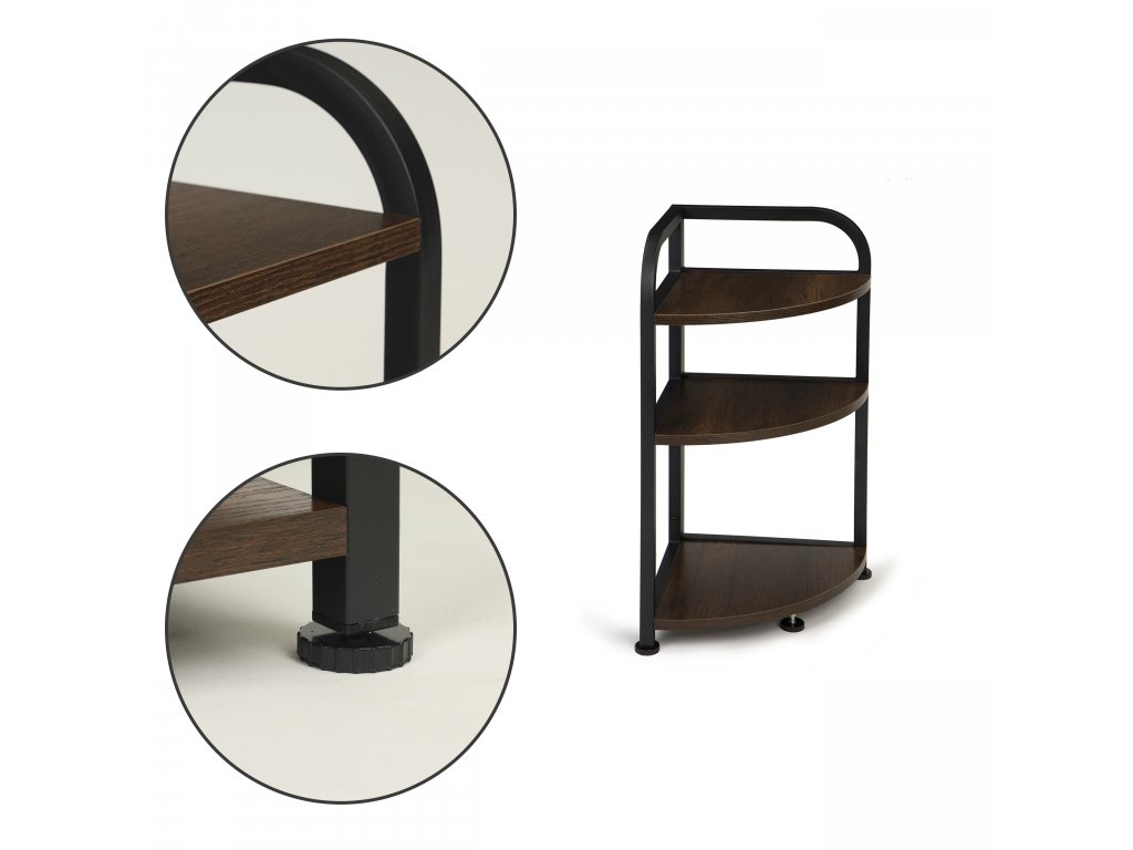 rám je vyrobený zkov, práškovo lakovaný v matnej čiernej farbe , čím saodolnosť proti poškriabaniu . Tvar nábytku sa dokonale hodído rohov stien. Zaoblenékovové bočnice v kombinácii s drevenými policami dodať nášmu nábytku ten správny charakter.