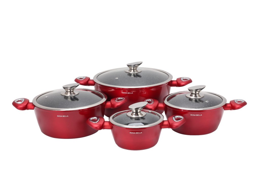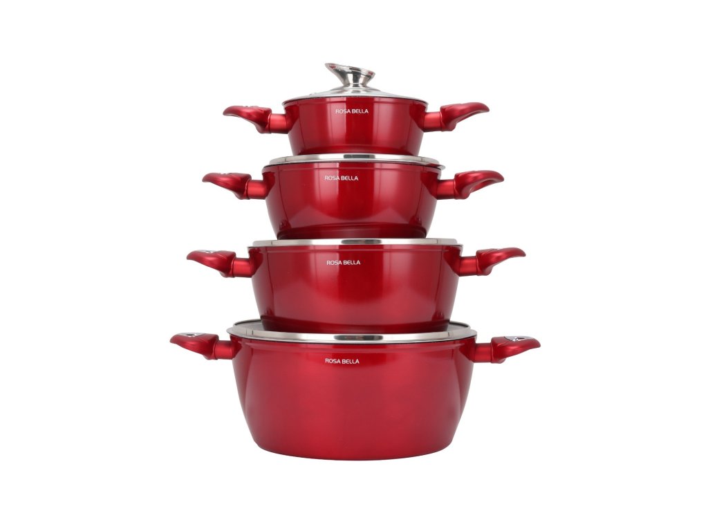 ROSA BELLA červená 8-dielna sada hrncov