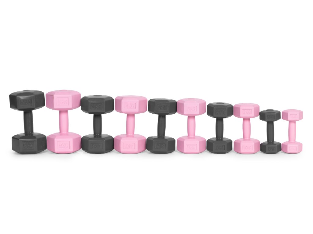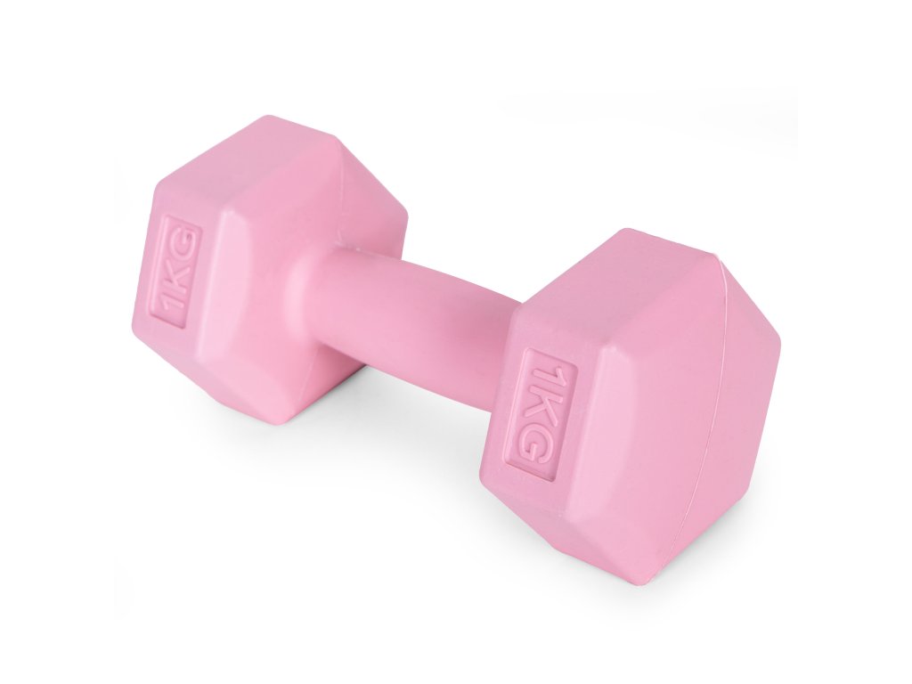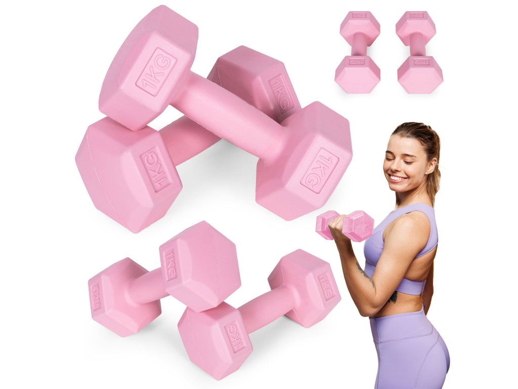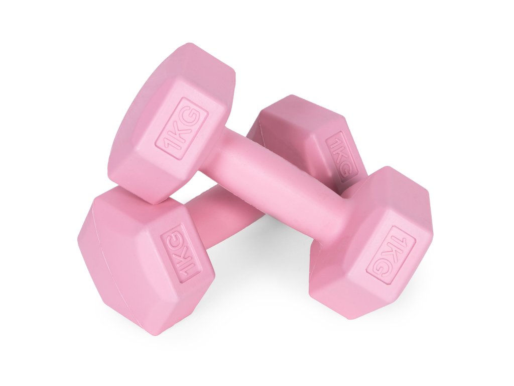 Sada šesťhranných činiek 2x1 kg, cvičebné závažia, fitness záťaž, ružová,