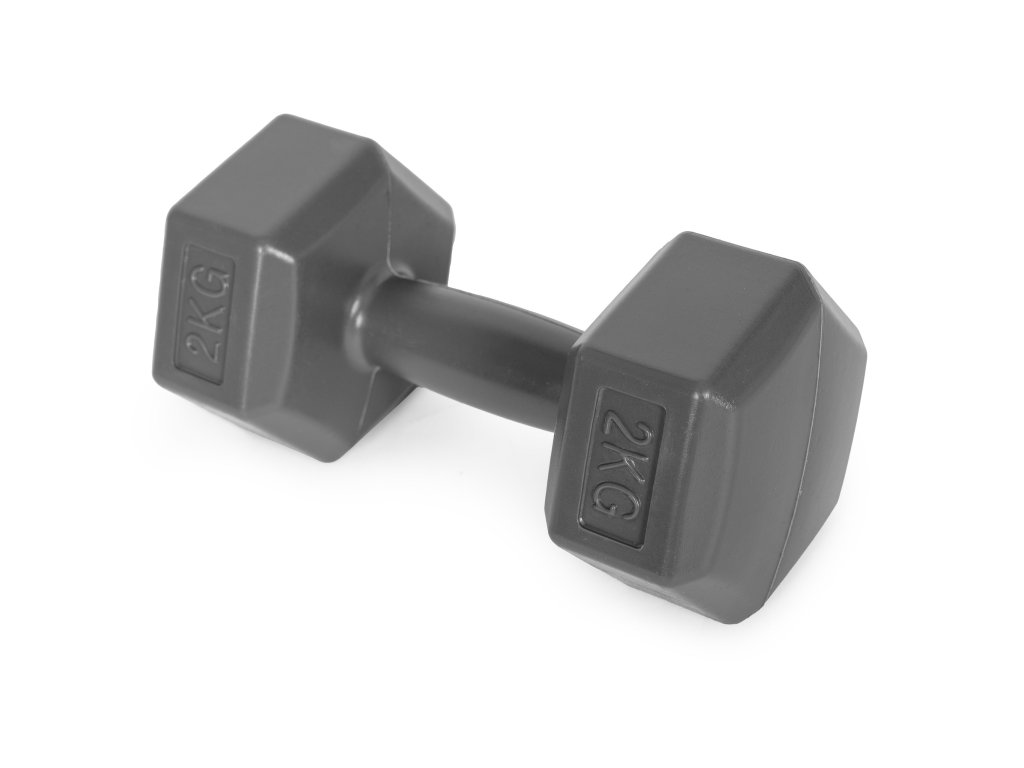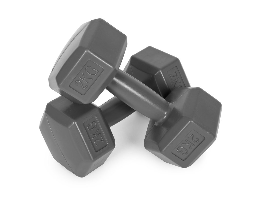 Sada šesťhranných činiek 2x2 kg, cvičebné závažia, fitness záťaž, sivá,