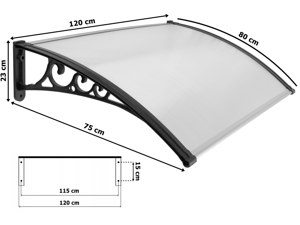 Sano plastová strieška 80x120cm čierna ⭐️ Účinná ochrana dverí pred poveternostnými vplyvmi ⭐️ odolný voči UV žiareniu ⭐️ Pevná a stabilná konštrukcia ⭐️ Samostatná inštalácia ⭐️ Bezúdržbový ⭐️ Nákup u výrobcu ✨ Plastová strieška nad dvere Sano 80x120 - praktický kryt pre domácnosť a kanceláriu✨ Získajte ochranu a štýl v jednom - čierna strieška nad dvere Sano 80x120 cm je účinný kryt proti dažďu, snehu a slnku, ktorý chráni dvere a ľudí vstupujúcich do domu. Namontujete si ho sami, bez toho, aby ste si museli najímať profesionála. Robustná konštrukcia s UV filtrom je zárukou odolnosti a estetiky na dlhé roky. Vlastnosti Materiál krytu: bunkový polykarbonát, priehľadný Farba konštrukcie: Čierna Upevnenie: plast + hliník Hrúbka panelu: hliník: hrúbka: 5,2 mm UV filter: Áno Typ montáže:: Montáž na stenu, samostatná Súčasťou balenia: Skrutky, kotvy, hmoždinky, návod Poskytuje účinnú ochranu pred poveternostnými vplyvmi Odolný materiál a stabilná konštrukcia Estetický dizajn Rozmery striešky Dĺžka: 80 cm Šírka: 120 cm Výška: 23 cm Hĺbka: 75 cm Ďalšie informácie Zobrazené farby by sa mali považovať za orientačné - môžu sa líšiť od skutočných farieb v dôsledku rôznych nastavení monitora a spracovania fotografií. Skutočné rozmery sa môžu líšiť od zobrazených. Tolerancia chyby môže byť +/- 5 %. Značka: Kód produktu: 331767MG kód: Farba: čierna Šírka: 120 cm Dĺžka: 120 cm: 80 cm Hrúbka dosky: hrúbka: 5,2 mm Materiál: materiál: polykarbonát, plast