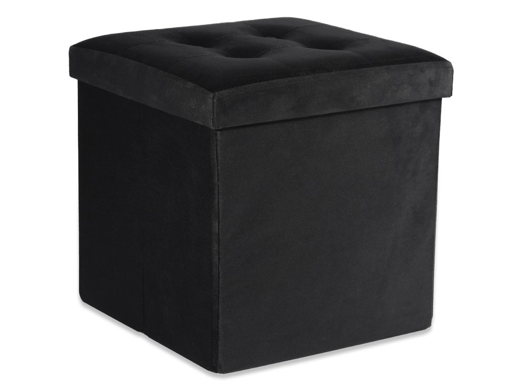 Skladací puf L s gombíkmi - 38x38x38cm zamatová čierna