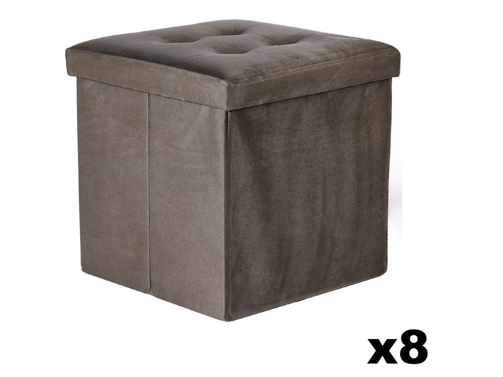Skladací puf L s gombíkmi - 38x38x38cm zamatová hnedá x 8
