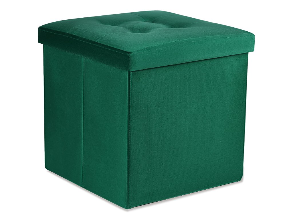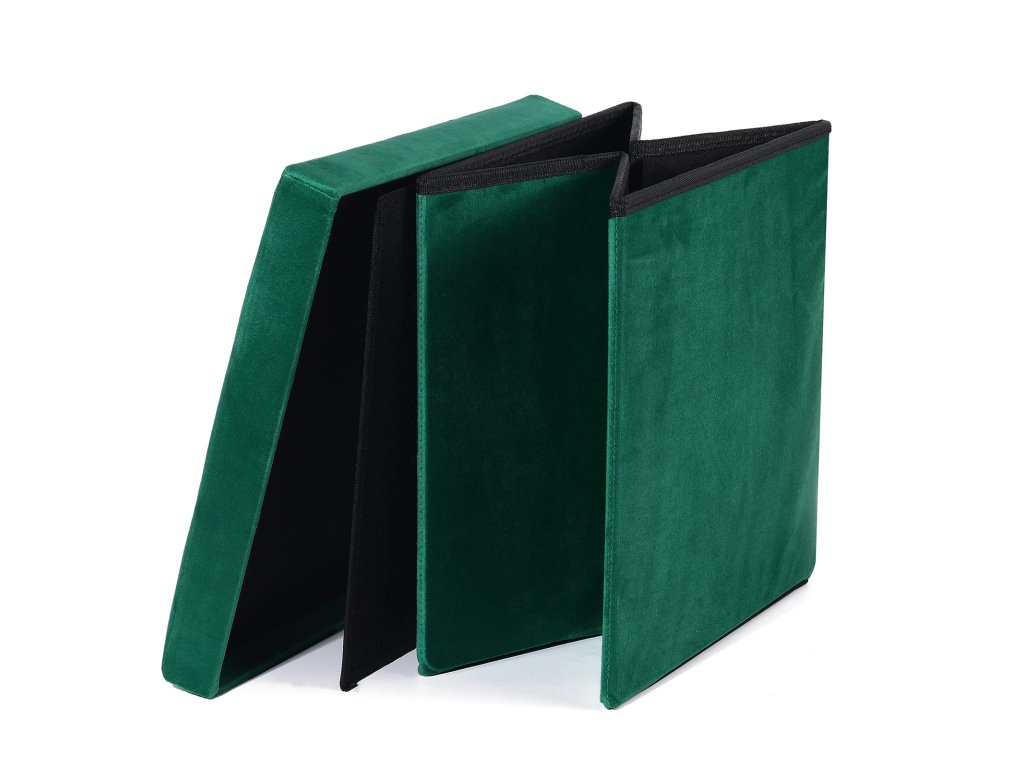 Skladací puf L s gombíkmi - 38x38x38cm zamatovo zelený