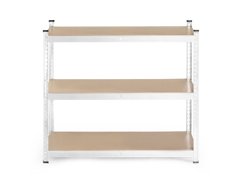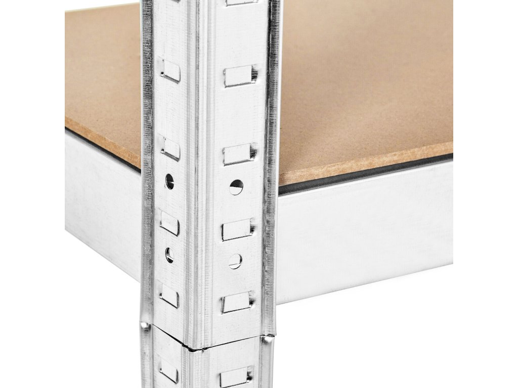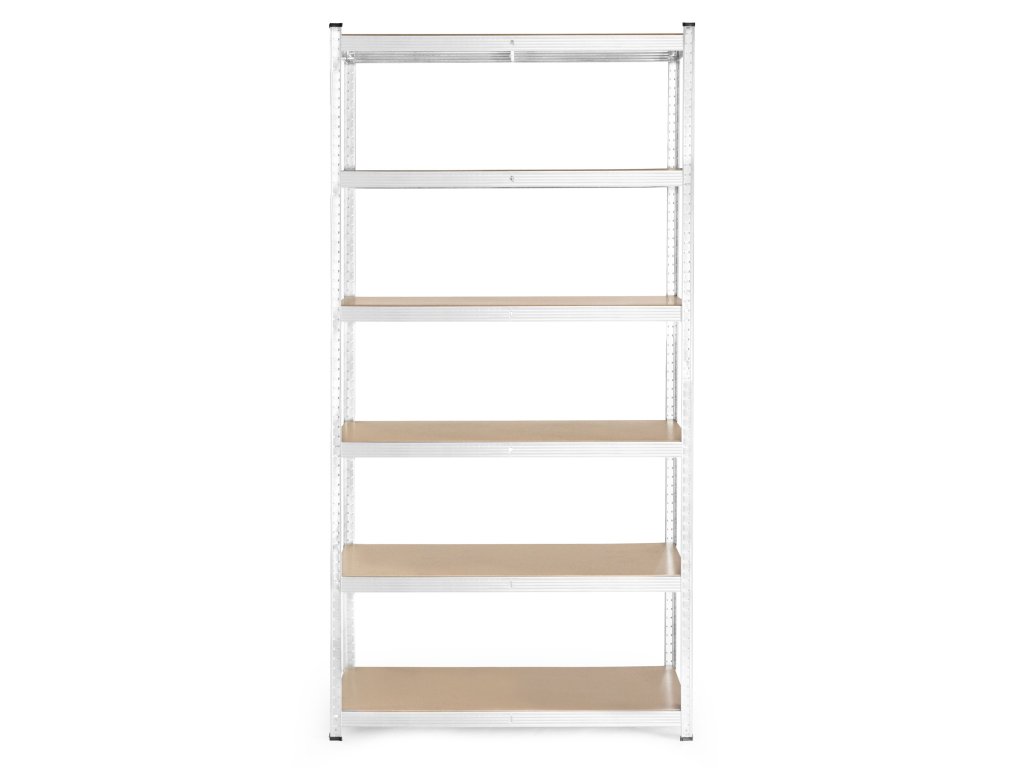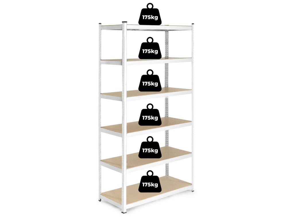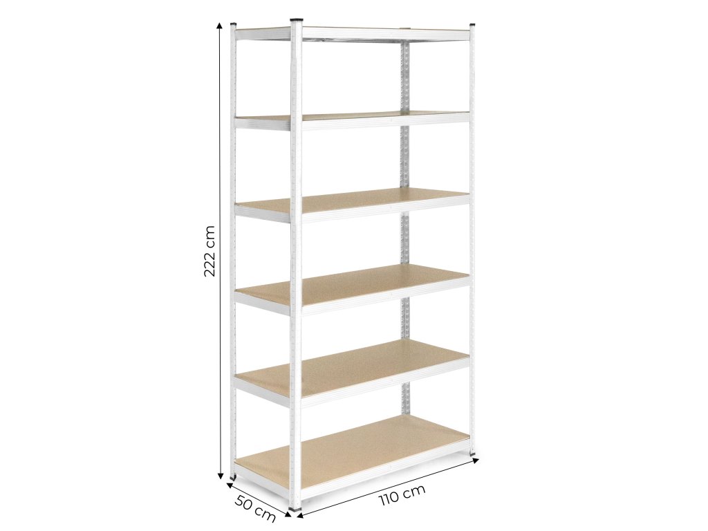 Stojan je vybavený6 pevných políc, ktorý možno ľubovoľne namontovať v ľubovoľnej výške podľa vašich potrieb. Každá polica pojme až175 kg, čo predstavuje pôsobivú sumu1050 kg. Stabilita je posilnenáprídavná centrálna podpera pod každou policou, čo zaručuje pevnosť a bezpečné skladovanie. Police sú vyrobené zodolná MDF doskaodolné voči mechanickému poškodeniu, tlaku a oderu -zabezpečenie dlhodobého a bezproblémového používania.