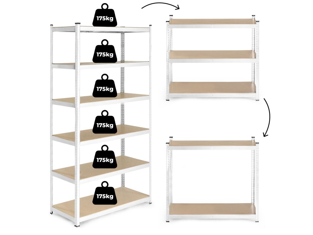 Stránka úložný regál je nevyhnutnou súčasťou každej garáže, dielne alebo pivnice. Je ideálny na uskladnenienáradie, autosúčiastky, záhradná technikaa domáce potreby. Vďaka svojejvysoká nosnosť políc (každý do 175 kg) si ľahko zorganizujete priestor a udržíte poriadok aj s ťažšími predmetmi. Je to skvelé riešenie pre domácich majstrov, mechanikov a všetkých, ktorí chcúmaximalizovať ich úložný priestor.