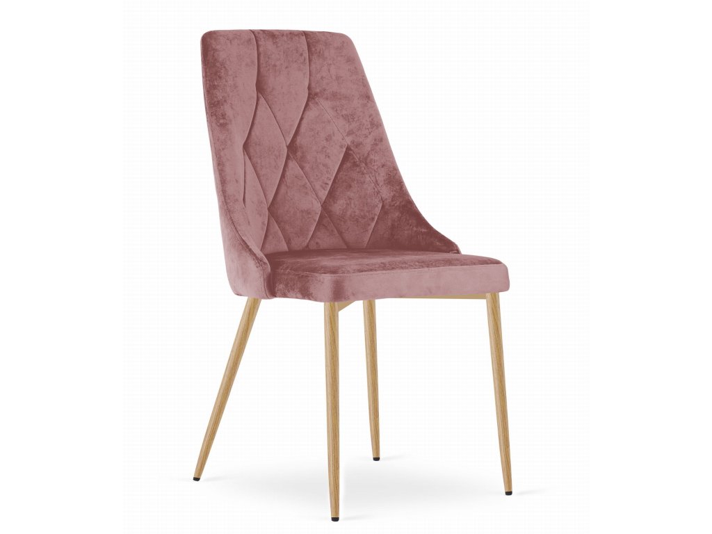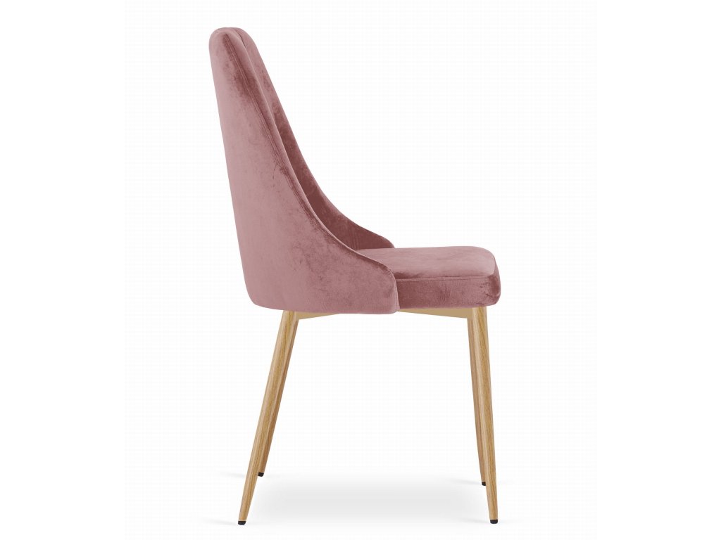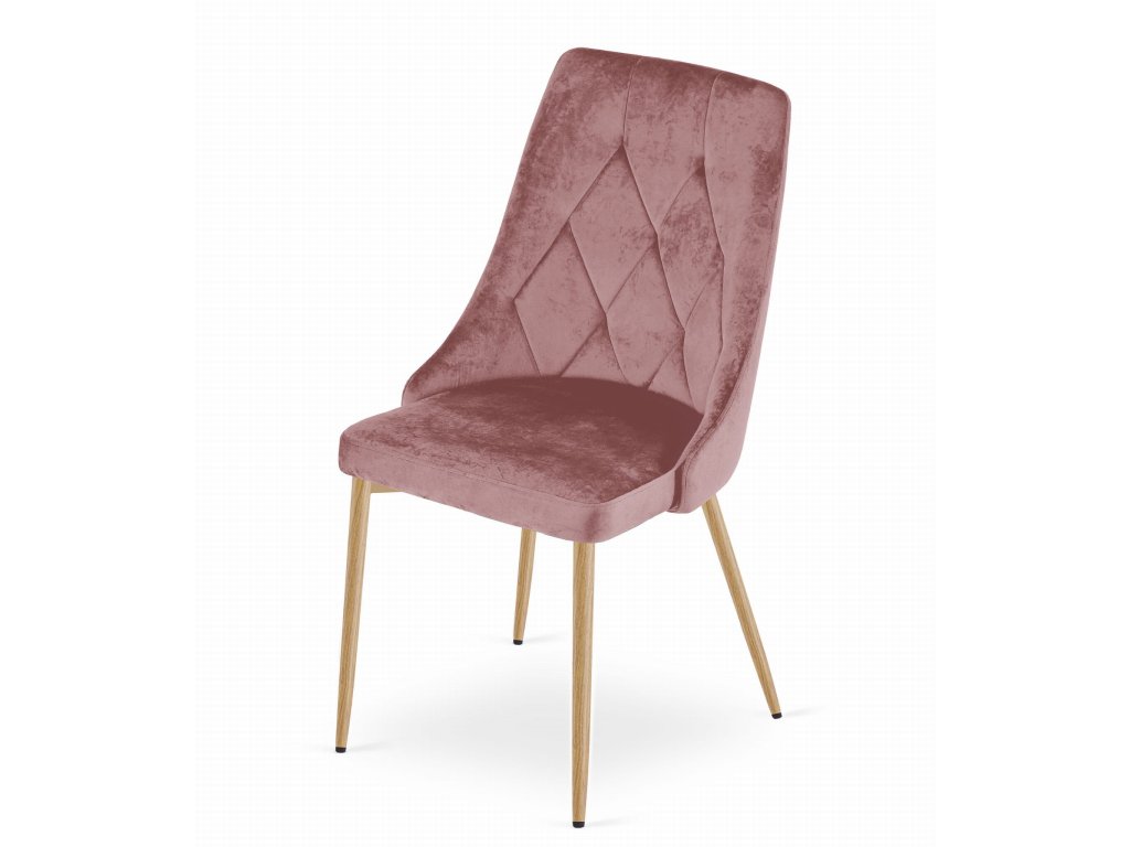 Stolička IMOLA - ružový zamat / nohy vo farbe dreva x 1