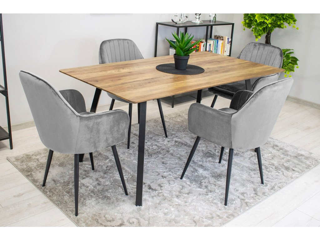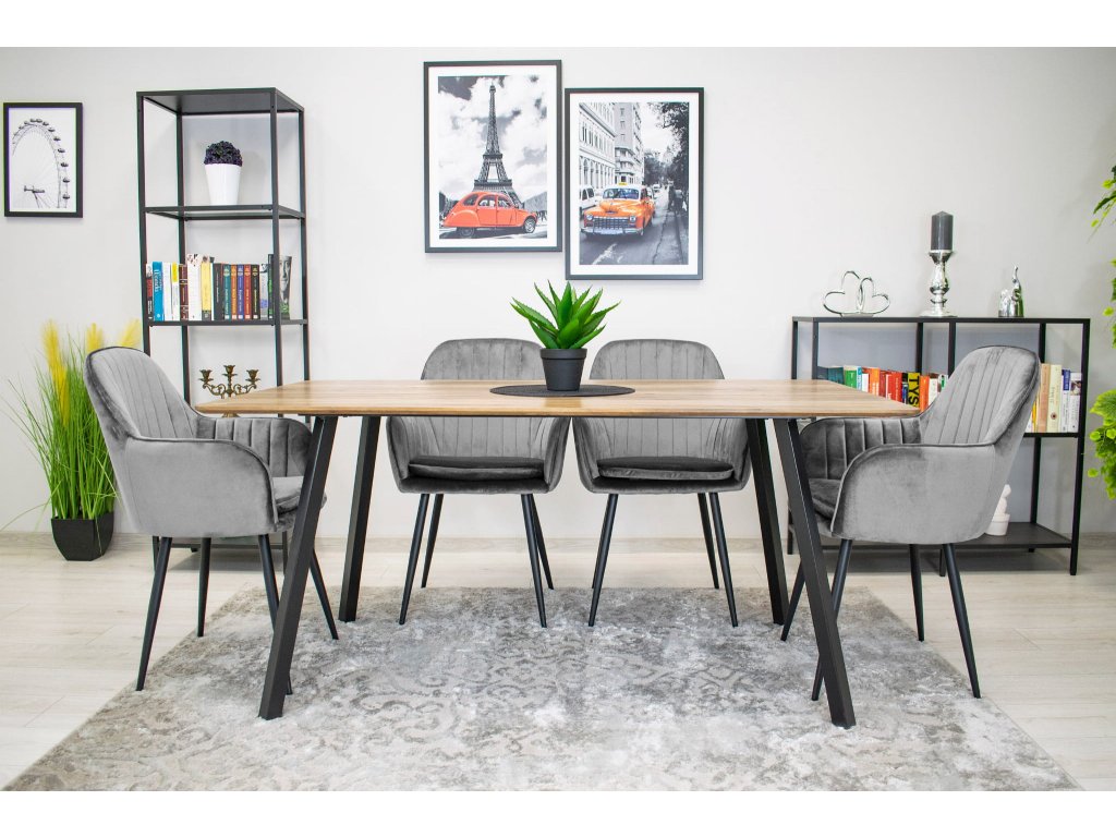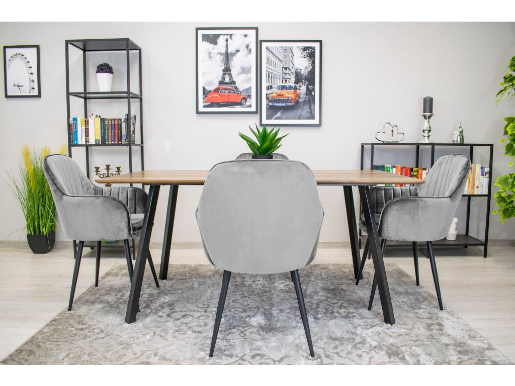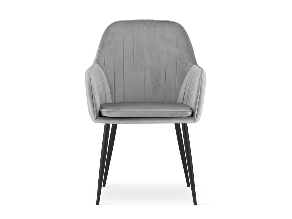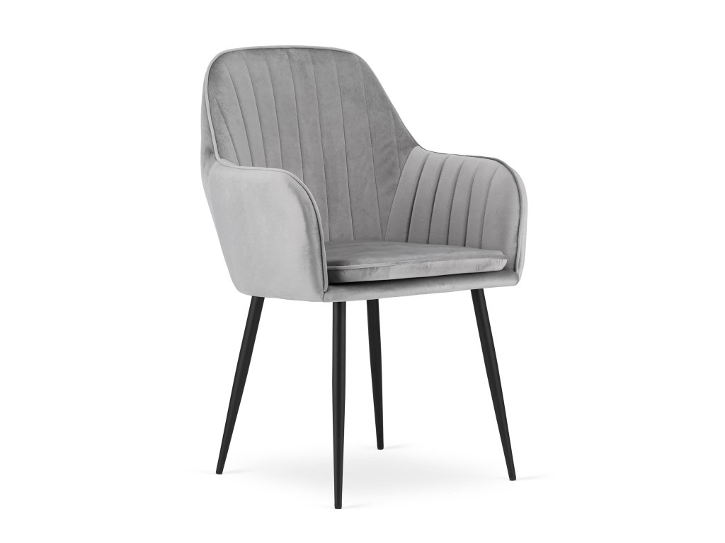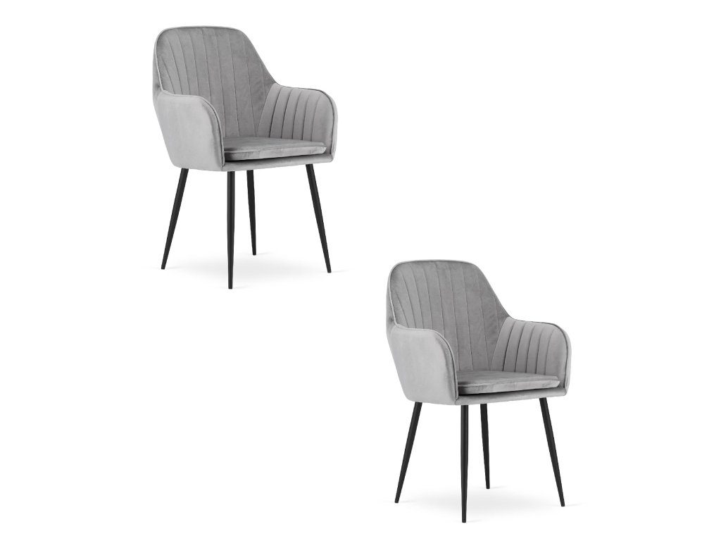 Stolička LUGO - strieborný sivý zamat / čierne nohy x 2