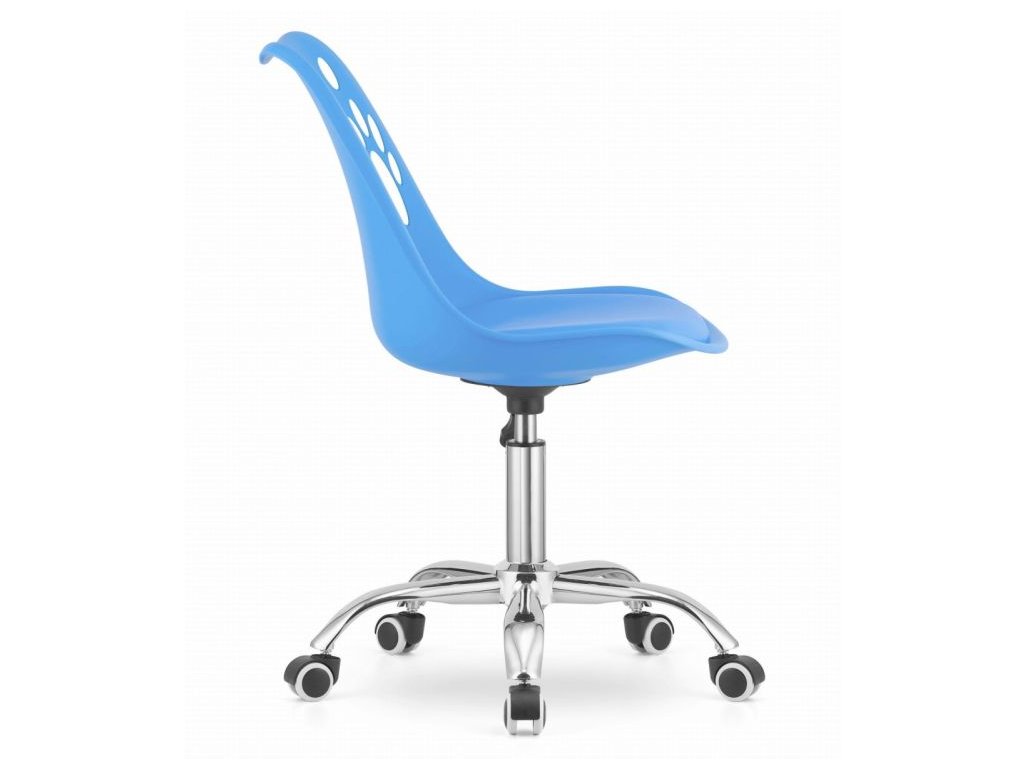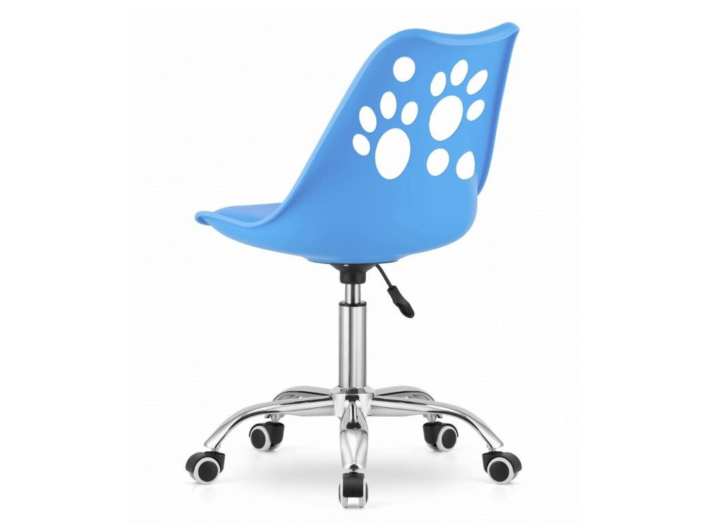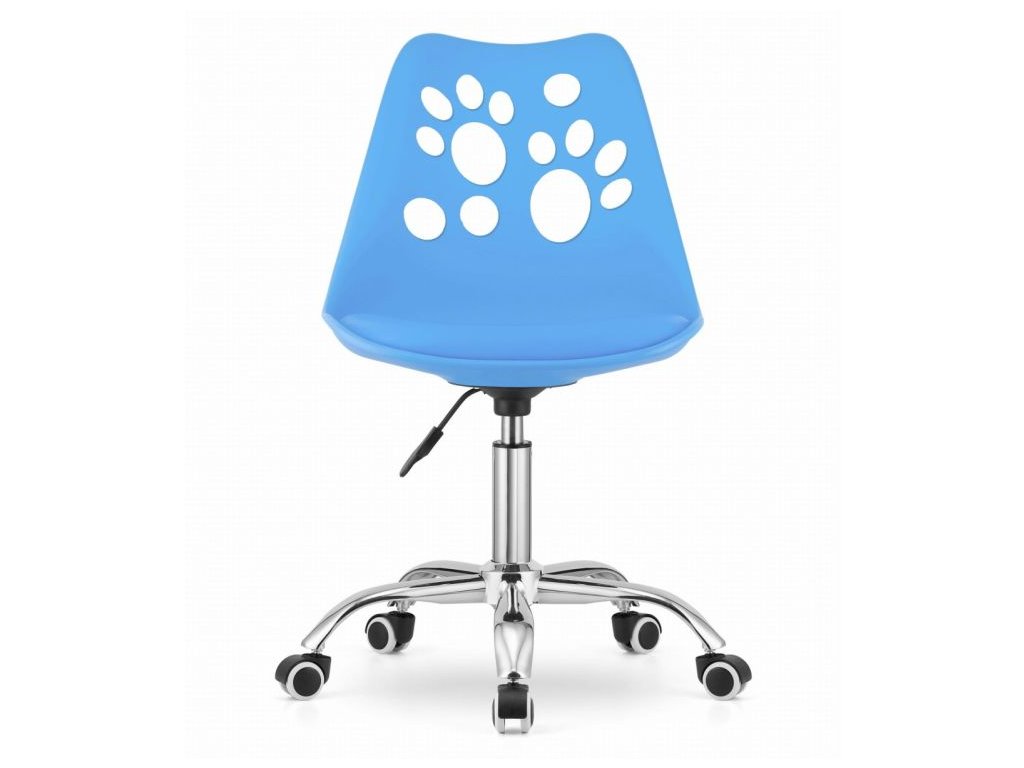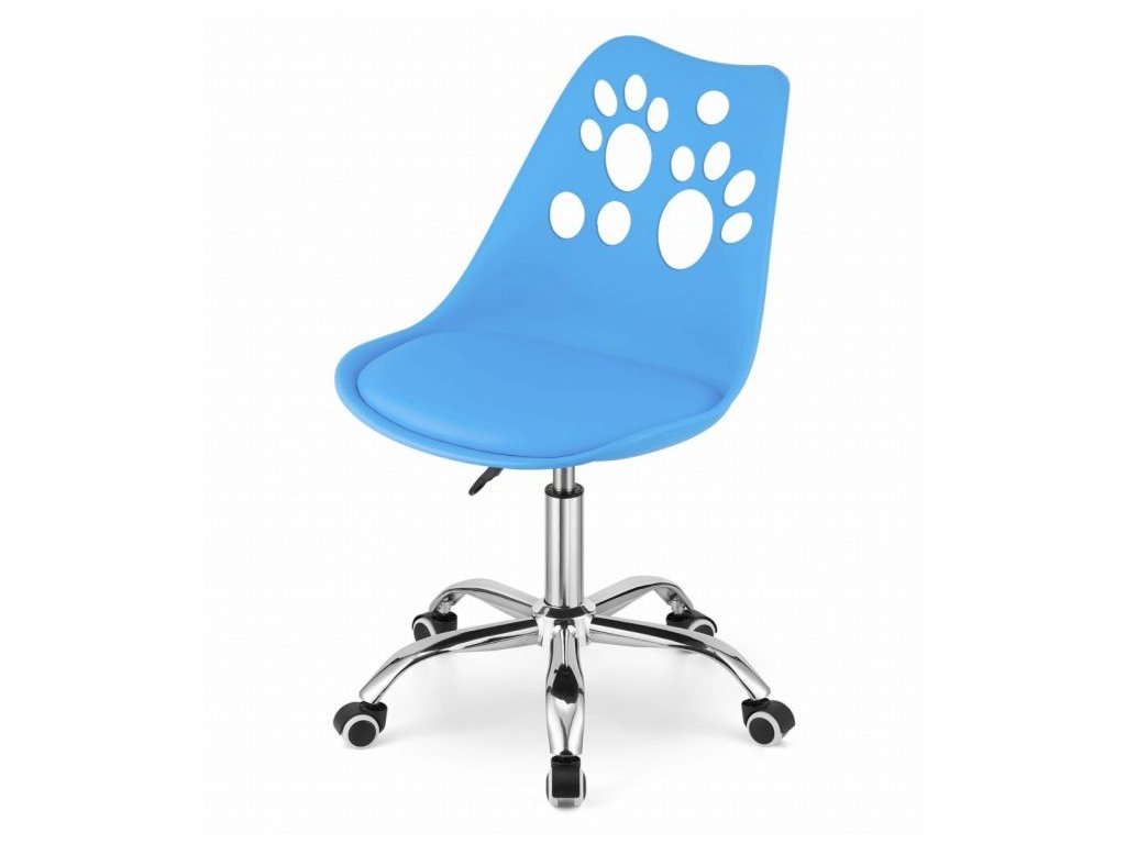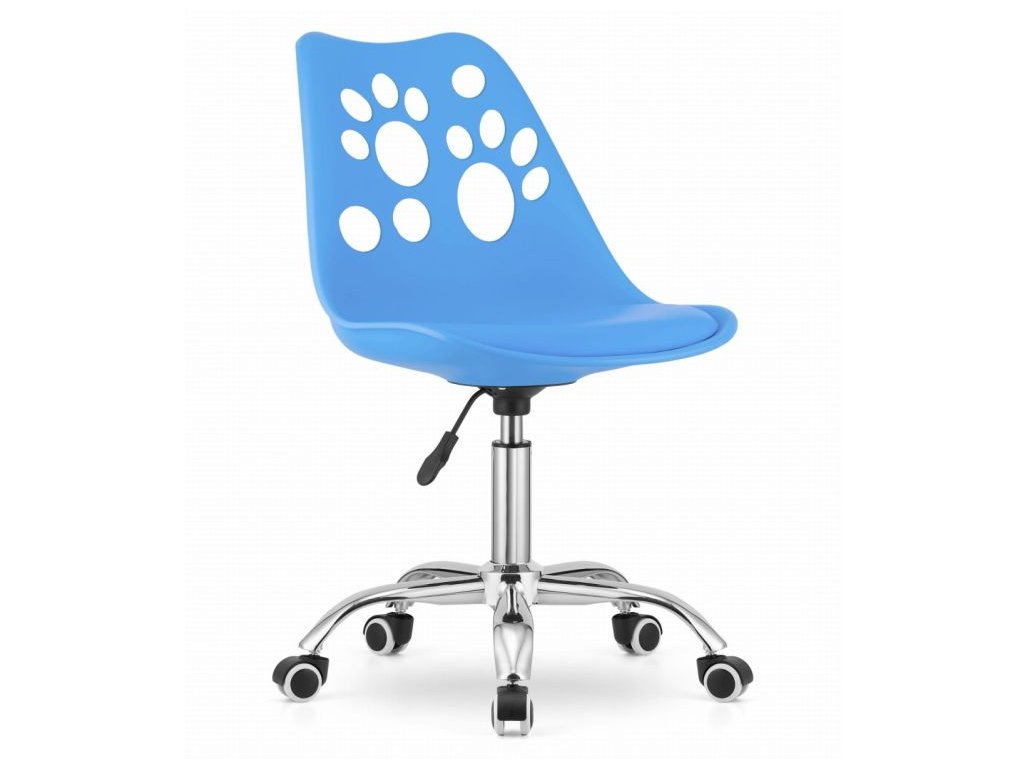 Stolička PRINT Modrá umelá koža otočná s chrómovým podstavcom
