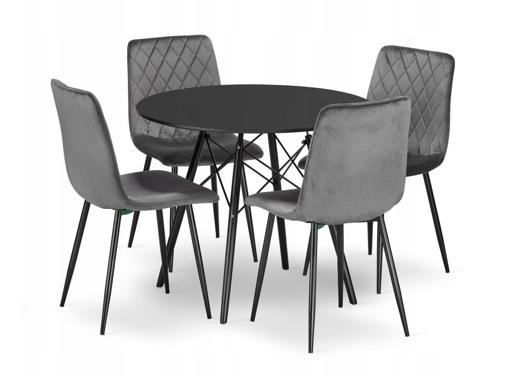 Súprava okrúhleho stola TURIN TODI 80 čierna + 4 stoličky TURIN tmavosivá