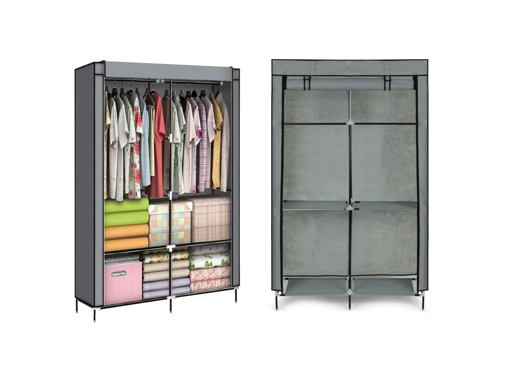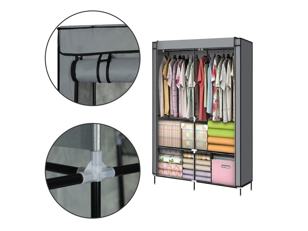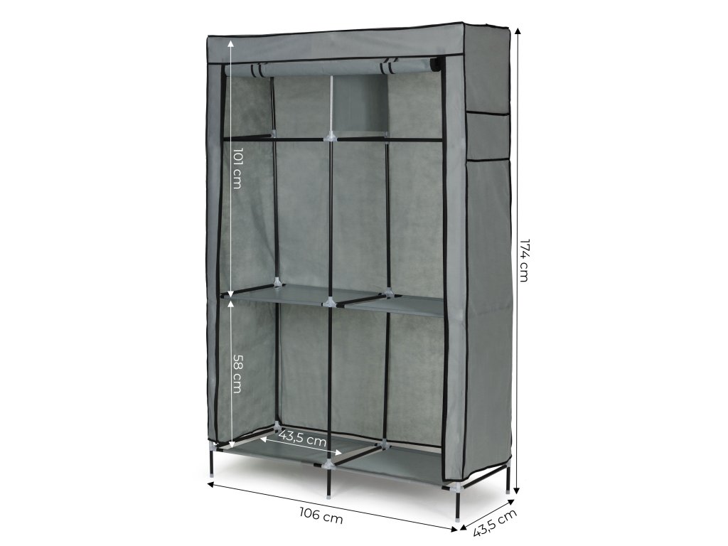 Textilný šatník je ideálnym riešením pre tých, ktorí hľadajúpohodlný a funkčný spôsob ukladania oblečenia, doplnkov a obuvi. Tento kus nábytku ponúka dostatok úložného priestoru a zároveň je štýlovým doplnkom vášhospálňa, šatňa, kúpeľňa alebo chodba.