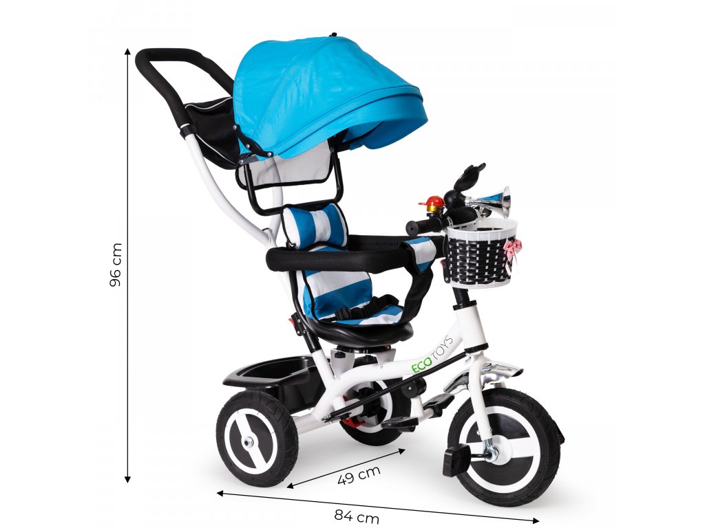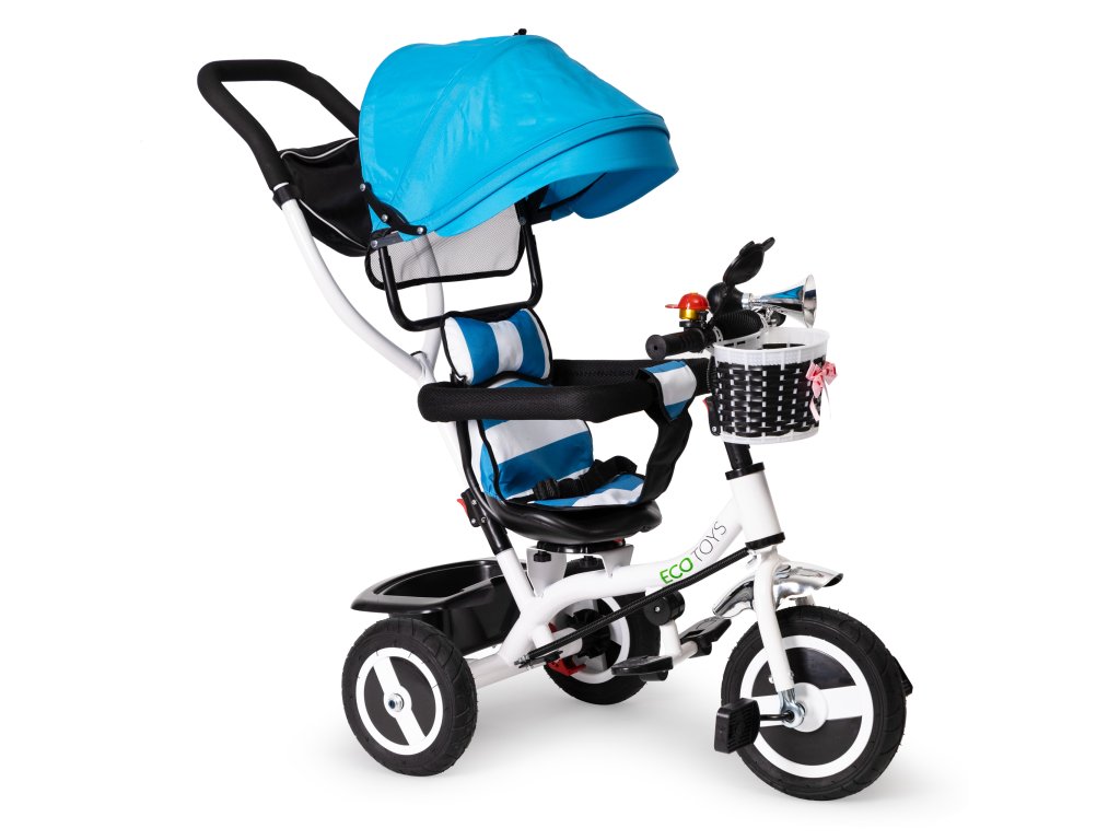 Detská trojkolka, kočík Rodullo vozík na kolesách otočná modrá