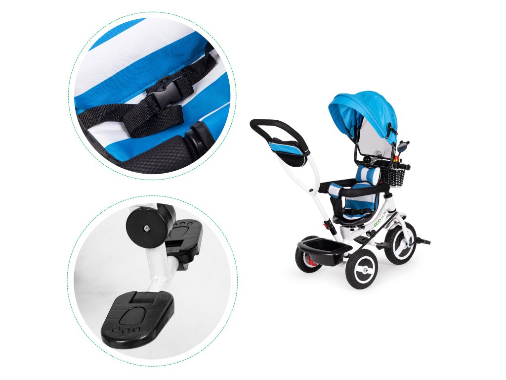 Bicykel kombinuje mnoho praktických riešení, ktoré vášmu dieťaťu poskytnús pohodlnou a bezpečnou zábavou . Bicykel mámäkké pohodlné operadlo , vďaka ktorej bude batoľa pohodlne sedieť apásy a zábradlia ho ochránia pred pádom zo sedadla.Skladacia strieška chráni pred dažďom a slnkom . Špeciálne profilovaný rám aotočné sedadlo uľahčí nástup najmenším deťom.