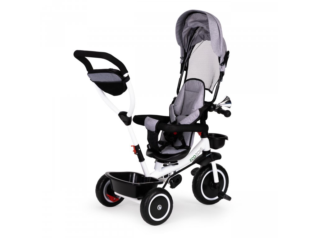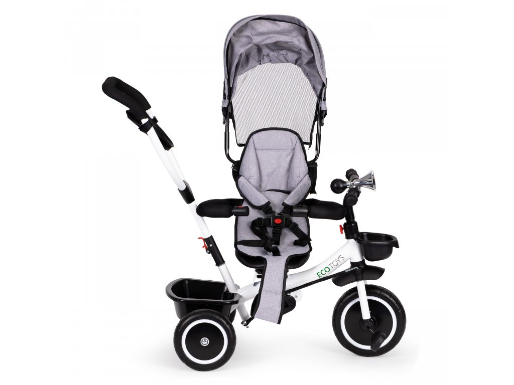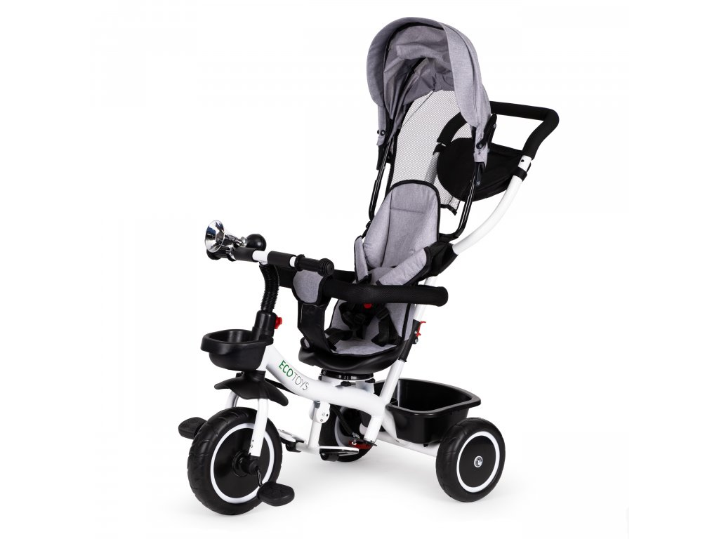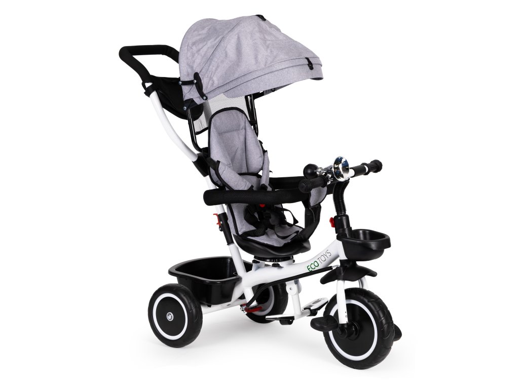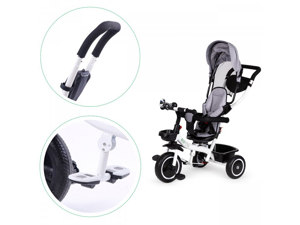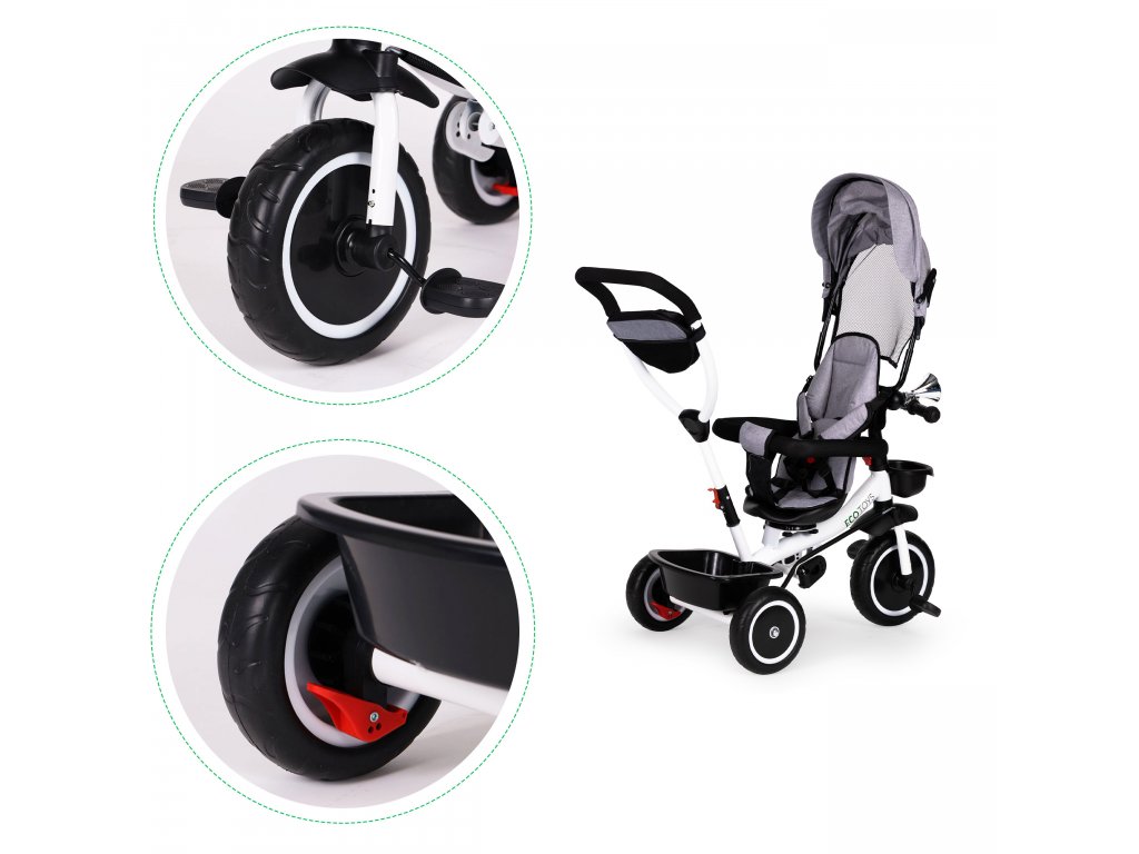 Bicykel kombinuje mnoho praktických riešení, ktoré vášmu dieťaťu poskytnús bezpečnou zábavou. Bicykel mámäkké pohodlné operadlo vďaka čomu bude batoľa pohodlne sedieť apásy a zábradlia ho ochránia pred pádom zo sedadla.Skladacia strieška ich ochráni pred dažďom a slnkom. Špeciálne profilovaný rám aotočné sedadlo uľahčí nástup najmenším deťom.