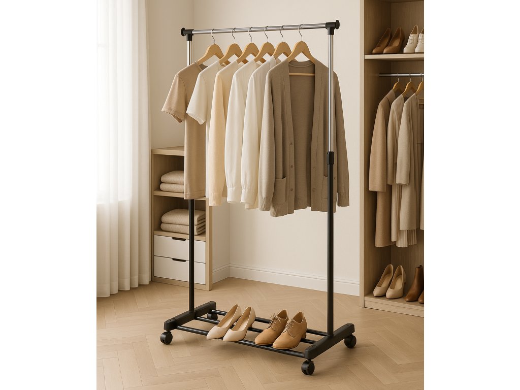 Stojanový stojan jepraktický spôsob skladovania oblečenia a obuvi, takže je skvelým doplnkom každej skrine, spálne alebo chodby vo vašom dome či byte. Jehouniverzálny dizajn znamená to, žehodí sa do moderných aj klasických interiérov, ktoré ponúkajú nielen funkčnosť, ale aj estetický nádych vášho interiéru.