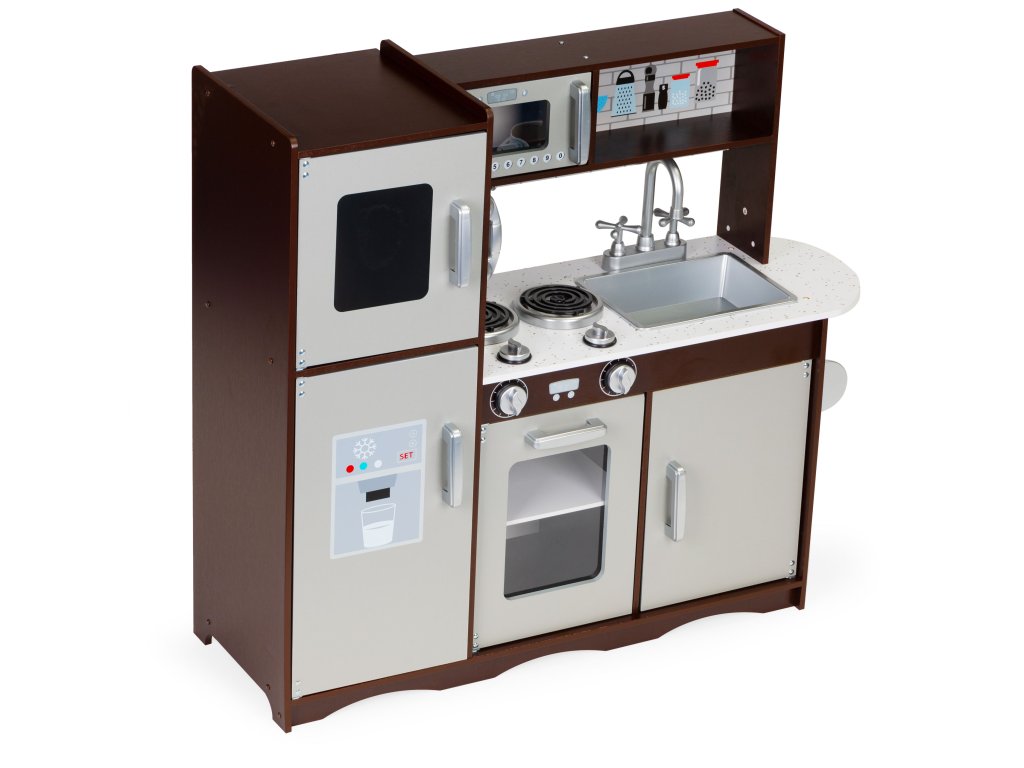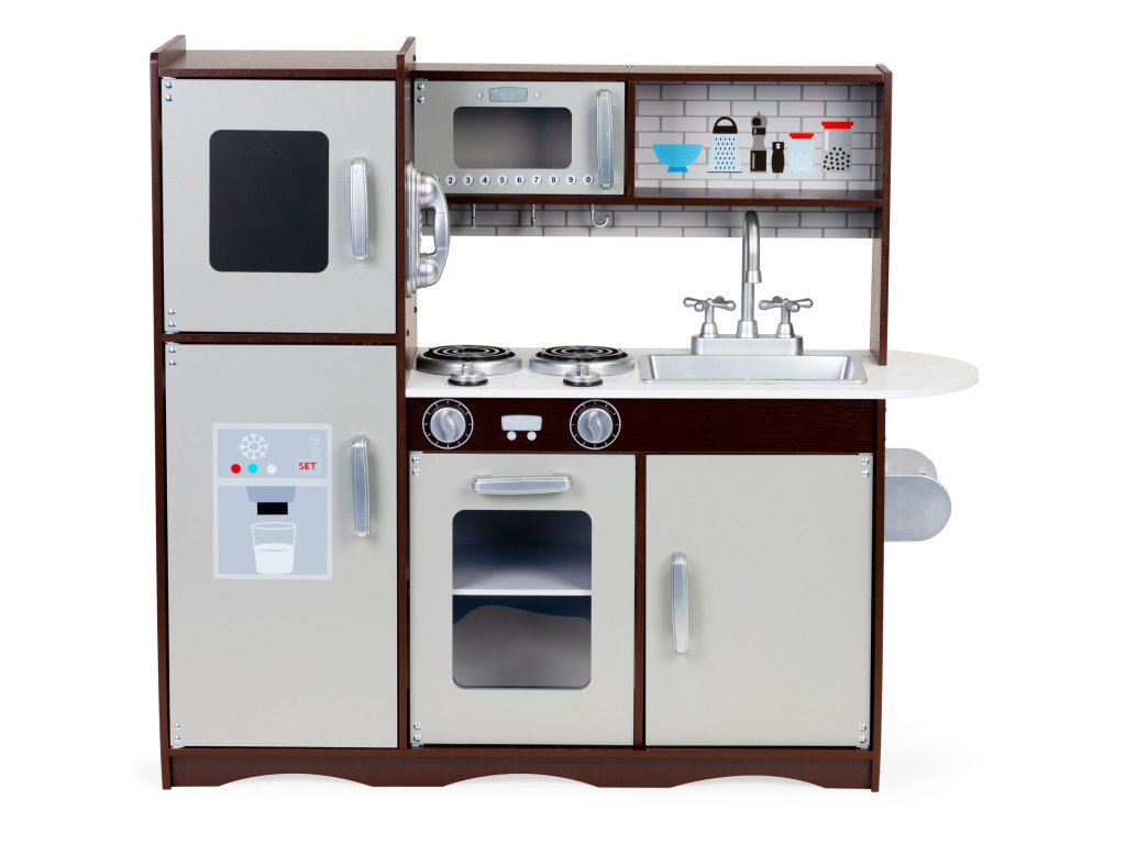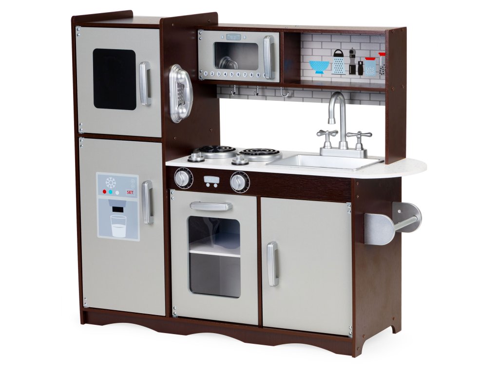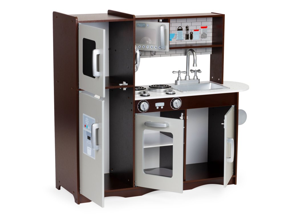 Veľká drevená kuchynka na hranie pre deti so skrinkami a chladničkou,