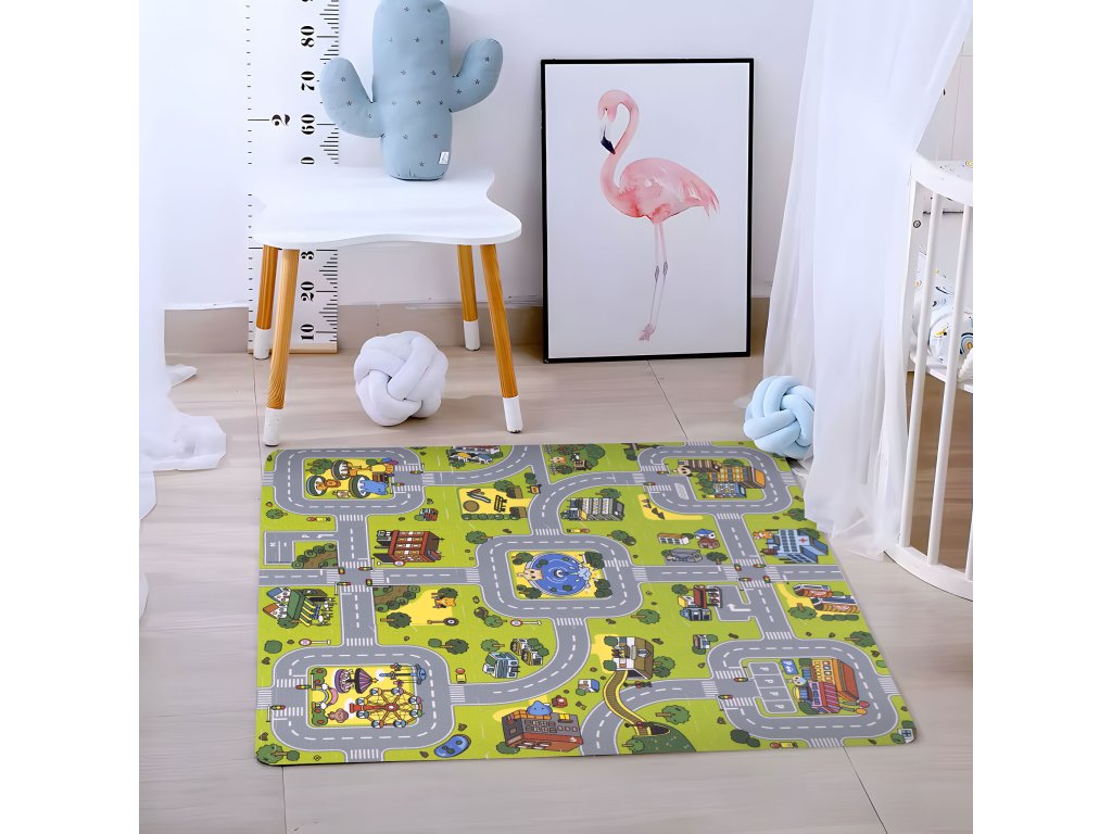 Podložka má jedinečný vzor zobrazujúci malebné mesto s početné cesty, ulice a križovatky. Vďaka tomu, podložka ponúka kreatívnu a fascinujúcu formu hry pre mladých milovníkov áut, vozidiel a rôznych dopravných prostriedkov . Každý prvok na podložke jestarostlivo navrhnuté s dôrazom na detail, aby stimulovali detskú predstavivosť a povzbudzovali ich k skúmaniu a interakcii s prostredím. Vďaka jasným a živým farbám sú vzory vizuálne príťažlivé, čonavyše stimuluje rozvoj zmyslov vášho dieťaťa.