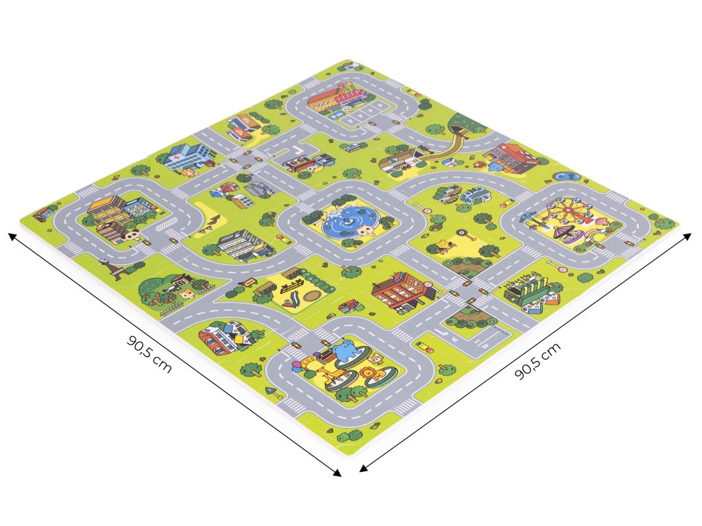Veľká penová podložka EVA pre deti Mesto 90,5x90,5 cm 21 ks