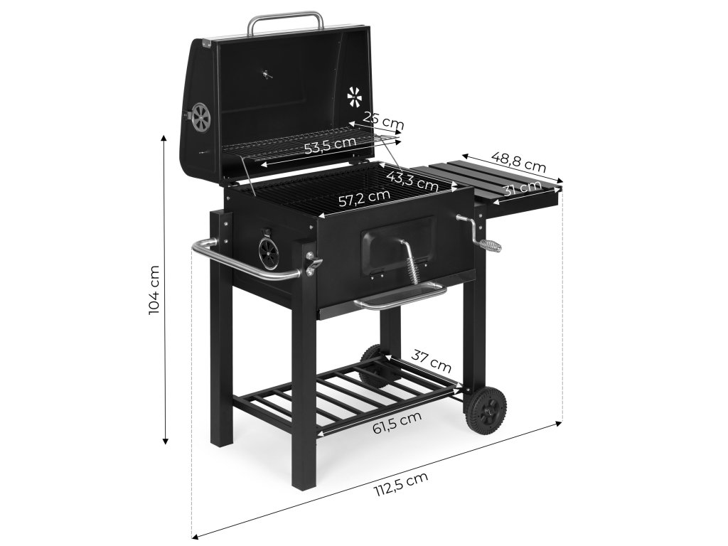 Extra police a háčiky poskytujú praktický úložný priestor pre príslušenstvo, korenie alebo pripravené pokrmy. Zabudované kolesá, môžete gril ľahko premiestniť kamkoľvek potrebujete - na terasu, do záhrady alebo k altánku. Vyberte si profesionálne vybavenie a užite si pohodlné grilovanie.