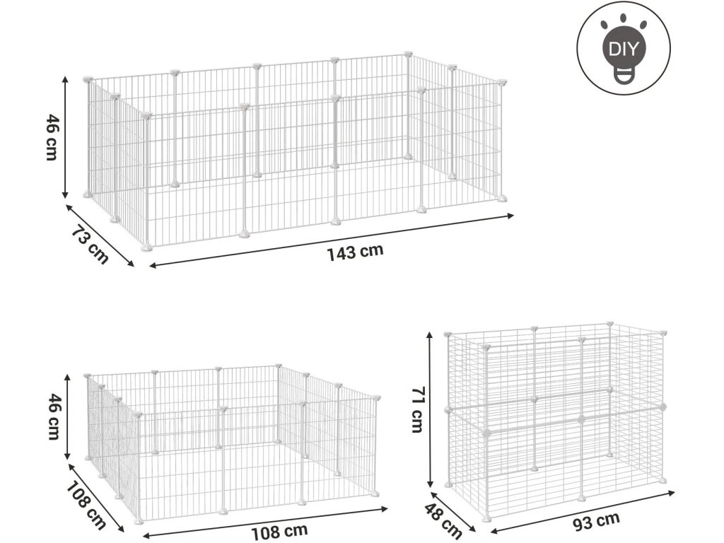 Ak chcete výbeh použiť pre zvieratá, ktoré sú skákavejšie, ako napríklad králik, fretka alebo činčila, je potrebné zvýšiť výšku stien. Z tohto dôvodu odporúčame zakúpiť druhú ohradu, aby sa nezmenšil voľný priestor, v ktorom sa zviera pohybuje.