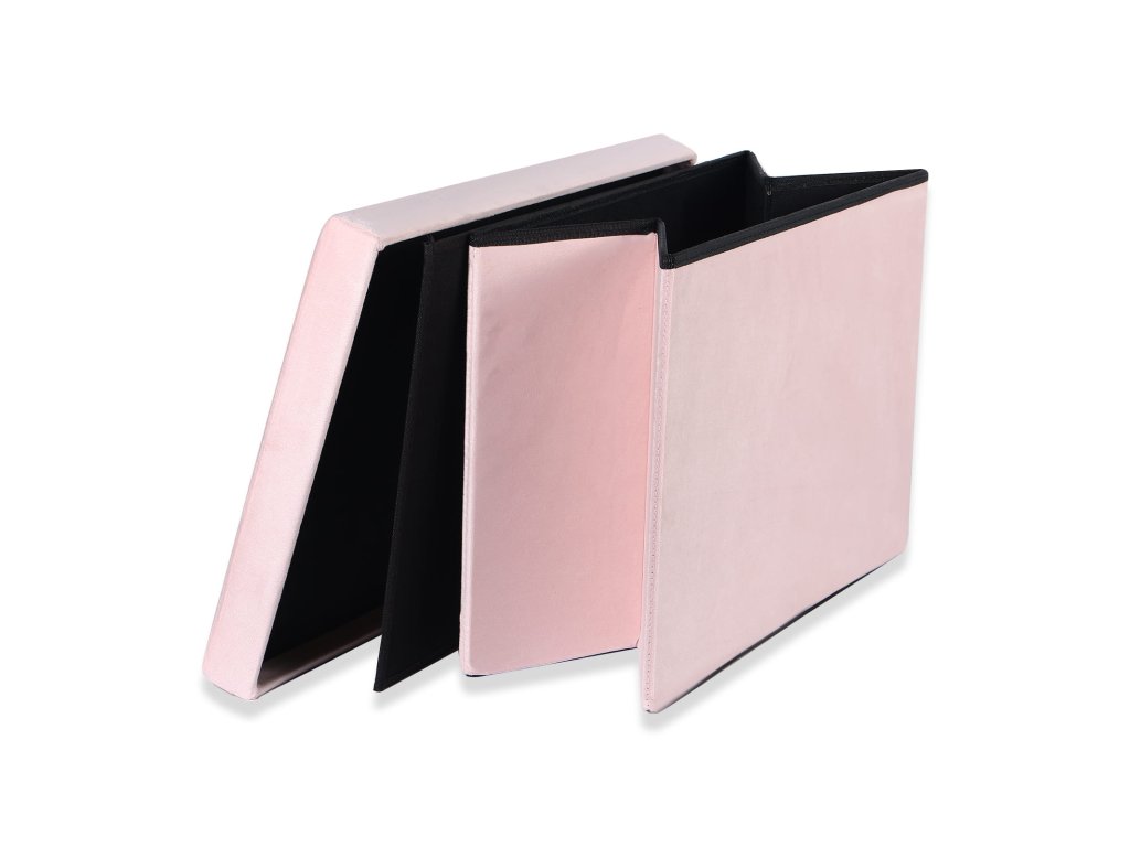 XL skladací puf s gombíkmi - 60x38x38cm zamatová ružová
