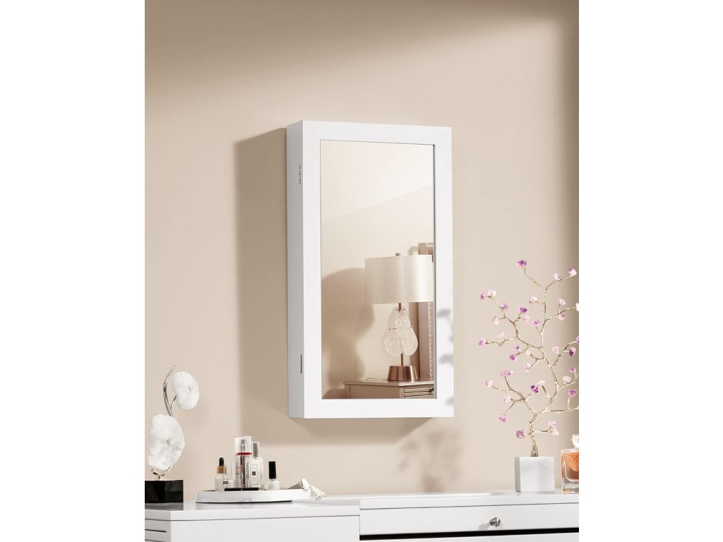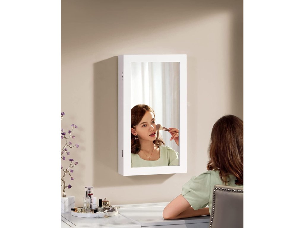 Zrkadlová skrinka na šperky, hodinky, okuliare a iné cennosti. Veľmi elegantná a praktická skrinka zapadne do interiéru vašej spálne, šatne alebo izby a bude tiež ideálnym a vhodným darčekom pre každú ženu.
